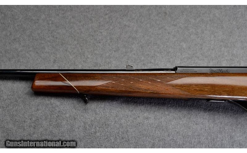 Description: .22 Long Rifle SOLD Metal Condition: Good, spots of bluing wear Wood Condition: Good, light handling marks Bore Condition: Excellent, bright Barrels: 24 inch Triggers: Grooved Stock Dimensions: 13.5"" LOP, hardwood with gloss finish Butt Pad: Rubber pad Sights: Three step flip-up with front post Item Location: Springfield, OR |