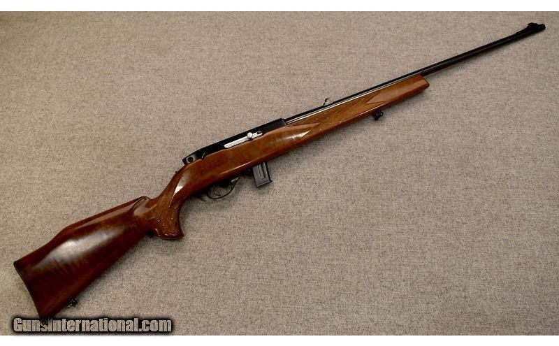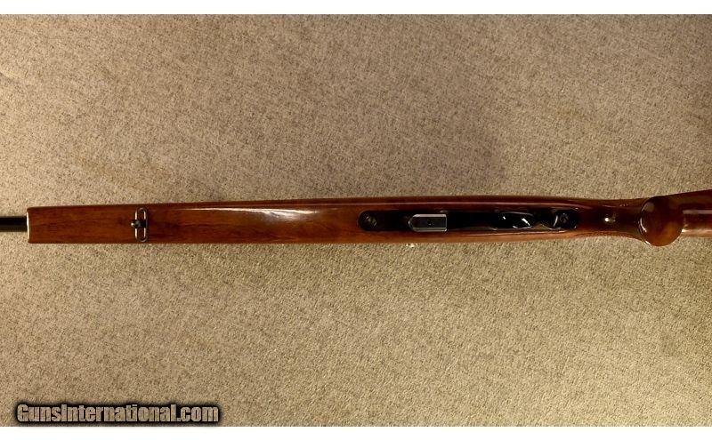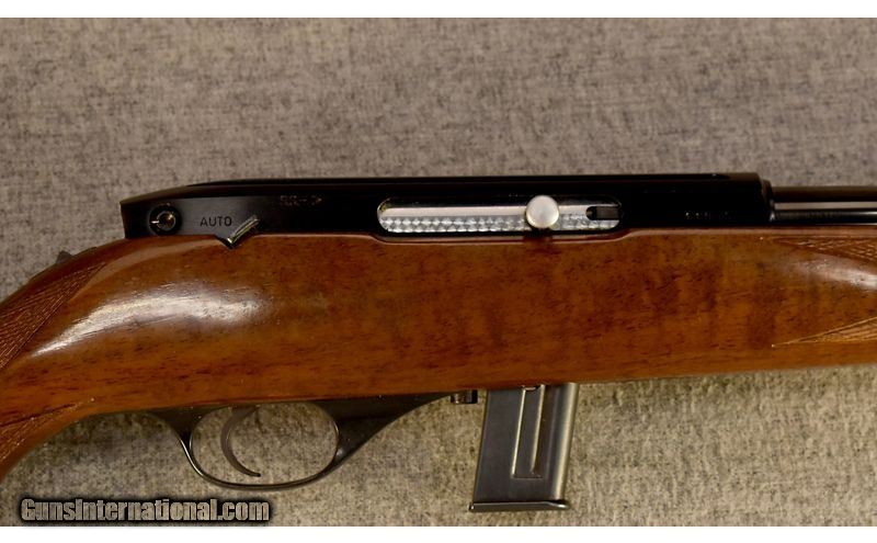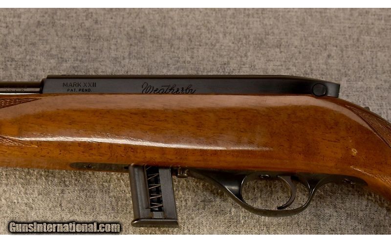 Description: This is a pre-owned Italian made Weatherby Mark XXII in .22 Long Rifle with the right side lever that allows changing from semi-auto to single-shot .22 Long Rifle SOLD Metal Condition: Very good with a few small scratches Wood Condition: "Quite good with a few small scratches, two small dents on the left sight of the stock and light handling wear Bore Condition: Clean with bright lands Barrels: 24 Stock Dimensions: 13 1/2" LOP Fore End: Checkered high gloss walnut Butt Pad: Checkered blue steel Weight: 6 Lbs. 2 Oz. Sights: "Beaded blade front, V-notch rear with two fold-down leaves plus integral scope groove Item Location: Glendale, AZ |