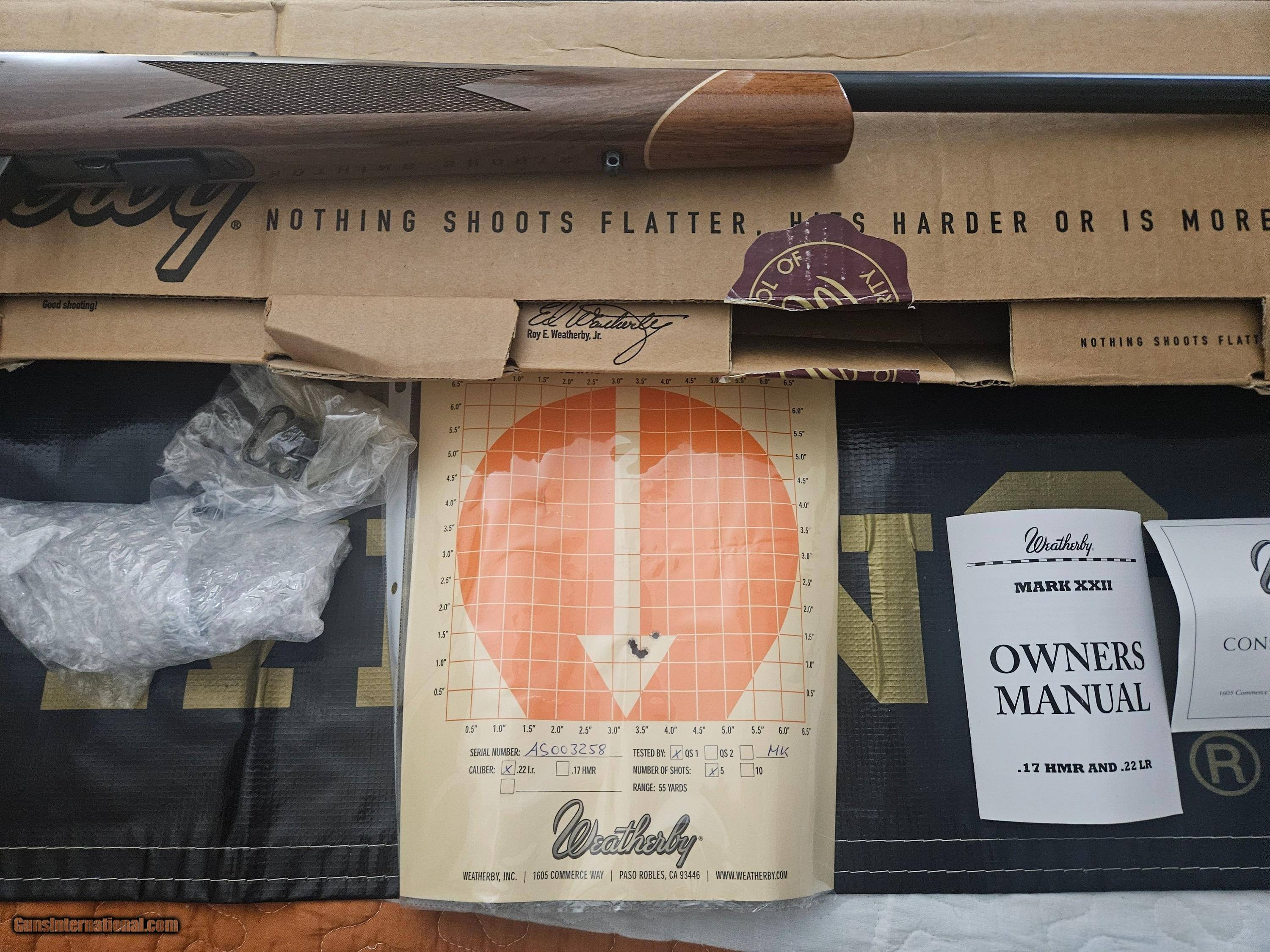 Description: Weatherby Mark XXII 22LR DLX Made in Germany for Weatherby by Anschutz that is NIB W/Paperwork, includes test target. Credit Cards add 3%. Rifle Caliber: .22 Long Rifle Price: $2,995.00 Shipping: $90.00 Buy Now Contact Seller |