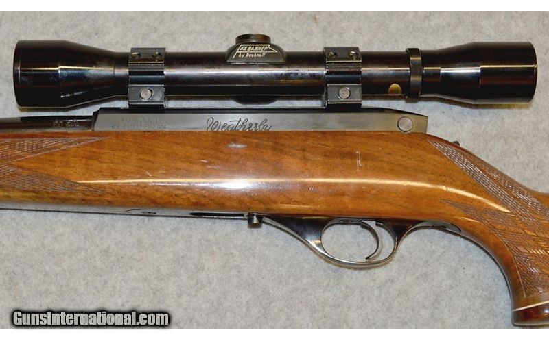 Description: This Weatherby Mark XXII is in excellent condition, featuring a Banner 4X scope. Please note that no magazine is included with the rifle. .22 Long Rifle SOLD Chambers: .22LR Metal Condition: Excellent Wood Condition: Excellent Bore Condition: Excellent Barrels: 24" BARREL Triggers: Factory Trigger Stock Dimensions: 14.5" Length Of Pull Fore End: Wooden Fore End with Checkering Butt Pad: Weathery Butt Pad Weight: 7 lbs. Sights: 4X Banner by Bushnell Item Location: Berlin |