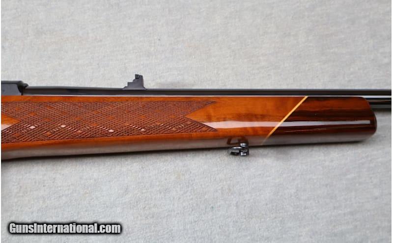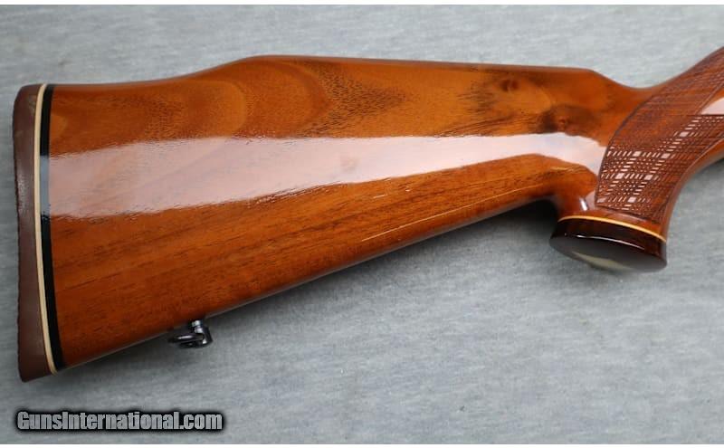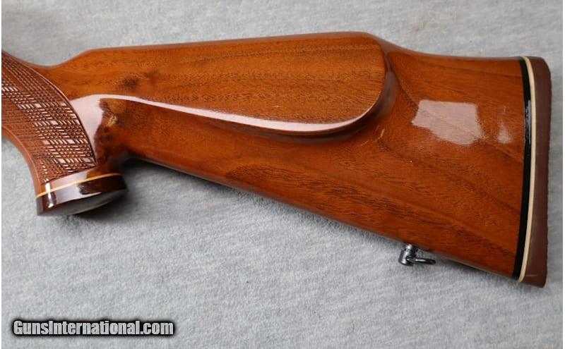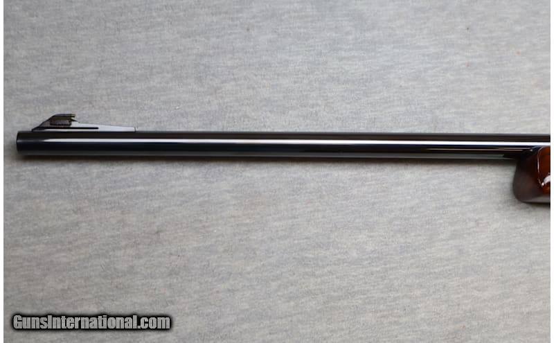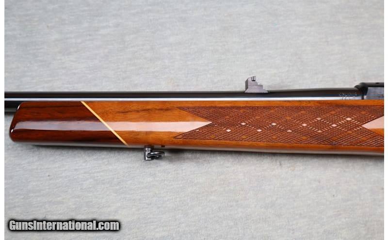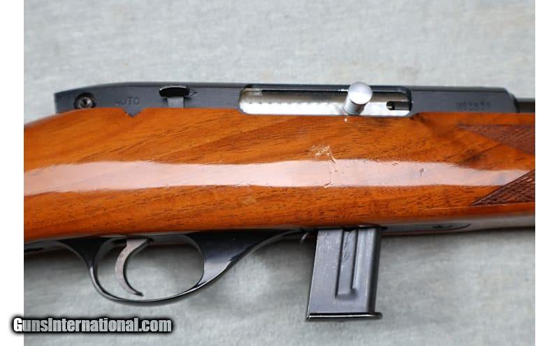 Description: This Weatherby was manufactured in JAPAN. It features a full Monte Carlo stock with skip line checkering, and Rosewood tip/grip caps. The sights are a gold bead and big game rifle type folding leaf rear sights. These rifles were, and are, highly regarded for their accuracy. The left side of the receiver is marked "MARK XXII / U.S. PATENT NO.3.155.004" / "Weatherby ® / SOUTH GATE CALIF. MADE IN JAPAN". The left side of the barrel is marked "CALIBER / ".22 L.R.". The ivory diamond inlay on the pistol grip cap indicates a "Deluxe" model. Based loosely on a Beretta design with several Weatherby-guided enhancements, the Mark XXII—as it was cleverly called—was initially built by Beretta in Italy. Introduced at tradeshows during the winter of 1961–62, the Mark XXII garnered several thousand orders. Eventually, the contract with Beretta was filled but not renewed. Over the coming decades, manufacturing of the Mark XXII was variously contracted to KGT and Nikko in Japan (1967–80), then in the United States to Mossberg (1979–82), then back to Japan to Howa (1984–88). Eventually, the Mark XXII was discontinued in 1989, but it was then resurrected in 2007 as a bolt action. Two versions of the original Mark XXII autoloader were available. One fed via a tubular magazine; the other used a box-type, detachable magazine that held 10 rounds. This example has the magazine and is still in great shape. .22 Long Rifle Metal Condition: very good Wood Condition: very good Bore Condition: bright Barrels: 24" barrel Stock Dimensions: 14.25 Fore End: checkered wood Butt Pad: rubber Weight: 5 lb - 14 oz Sights: factory sights Item Location: La Vista, NE Price: $999.99 Contact Seller |