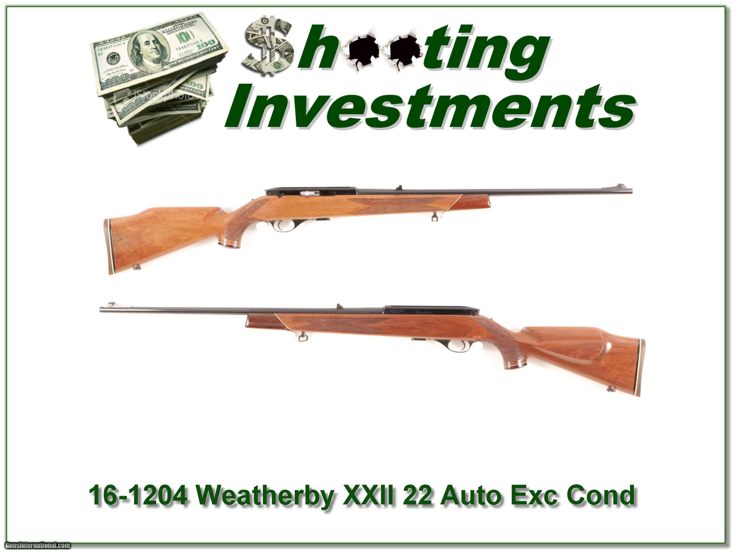 Description: This is an Italian made (by Beretta) Weatherby XXII 22 auto. It is the Deluxe model in excellent condition. These have become collector guns and know for superior accuracy! I am selling this one on consignment and as such lay-a-way can’t be used. It does of course have the standard 3-day inspection. Shipping and insurance is $35 or $15 more if you want it shipped in a new Plano hard case. Please email me with any questions or larger pictures. (I now consign quality firearms only 10%! Let me know if you have any you would like to sell!) [16-1316] Payment: Payment is by Money Order, Cashiers Check or Personal Check. I can now also accept MasterCard and Visa with a 3% convenience fee. PayPal can be used for some items but never firearms. Please let us know if you would like to pay via PayPal. Shipping: The shipping charge will be listed in each description. It is $35 for most guns. Some heavy guns or those insured for over $2000 will be higher. Shipments to Alaska and Hawaii are higher because air shipment is required. Most firearms are shipped within 5 days of receipt of payment. We prefer shipping at the beginning of the week to avoid firearms in transit over weekends. We package all shipments carefully and insure them for the full purchase price, rounded up to the next $100. In the unlikely event that damage occurs, it is important that you save all packaging material for the claims process. Optics are shipped Priority Mail and most other non-firearm shipments are shipped First Class. Returns: Our return policy is simple. If for any reason you are not pleased with your purchase, you may return your item for a refund. The only exception is ammunition, it cannot be returned. It is important to us that you are happy. Guns cannot be fired or dissembled before returning them and must be returned in the same condition as received. Notification of a return must occur with-in 3 days of receipt at your dealer. Shipping, convenience and dealer fees are not refundable and are the responsibility of the buyer. Lay-a-way: If needed, we offer a 60 day lay-a-way option on most firearms. It is 1/3 now, 1/3 in 30 days and 1/3 in 60 days. Lay-a-way firearm sales are final. Consigning your firearms with Shooting Investments: We will help you get top dollar for your firearms. While most local guns shops charge 20% or more, our fee is only 10% with a minimum of $50. At your local gun shop it might take months to sell. Selling on-line provides instant access to thousands of interested buyers. You won’t find any other on-line dealer willing to sell your firearms for only 10% or listing every gun on 4 separate s. Selling through an House typically costs the seller 15% and the buyer an addition 15% (so 30%) and you have to wait several months to sell and longer to receive funds. If properly priced, we will sell your firearms in a week or two. Send us an email or give us a call and we’ll explain how easy it is for you to get top dollar. Trading: We collect guns and usually just trade for guns we want to add to our collections. We often sell guns for others wanting to purchase one of ours. We find this the most fair to both of us. Our Commission is only 10% and we hold the gun you want until yours sells. Please contact us if you want to sell one of yours to buy one of ours. Help for California Buyers: We are happy to ship to California. It is the buyer’s responsibility to make sure any item you buy is legal in your state. We are also happy to help with your purchase of a firearm from someone other than us. If you see a gun you would like to buy but the seller can’t or won’t ship to California we can help. You buy the gun and have it shipped to us. We’ll then ship it to your California dealer. The cost for this service is only $30 + shipping. Let me know if we can help! SOLD |