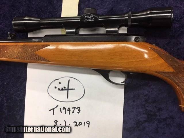 Description: Weatherby XXII, tube feed, Weatherby Scope, in very good condition, couple very light marks in wood, see photo's(11-12). Tested with several types of 22lr ammo, no jambs, no misfires. Still very accurate, target in picture is from 15 yards offhand rapid fire. $35.00 shipping SOLD |
