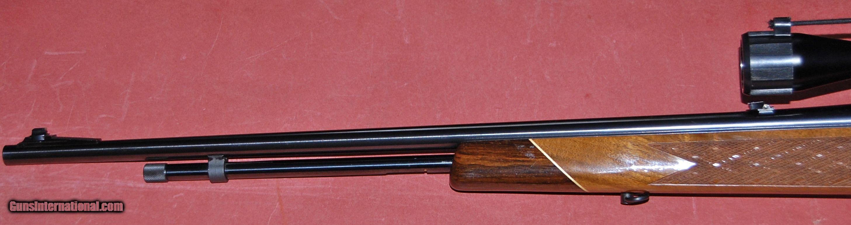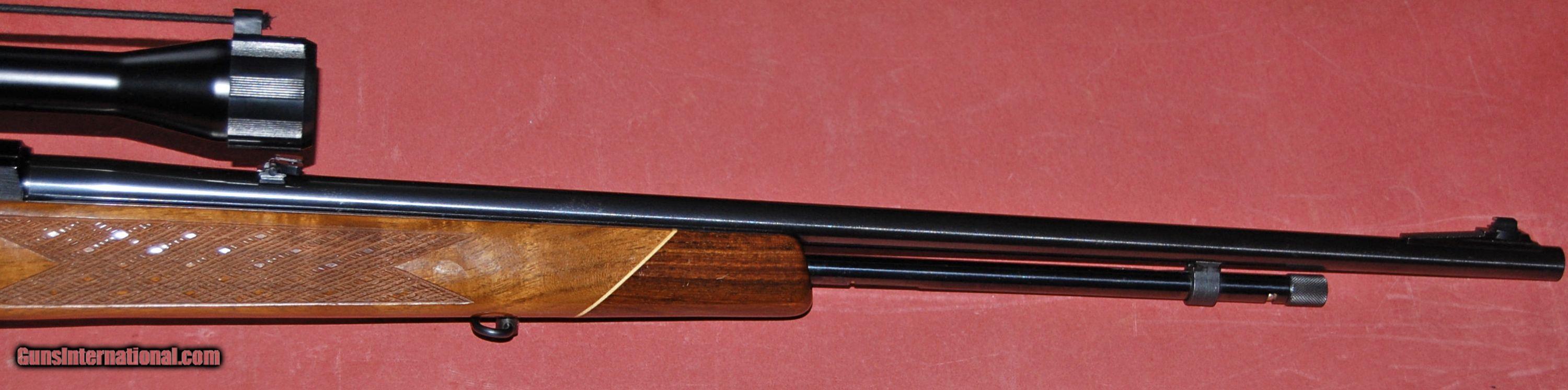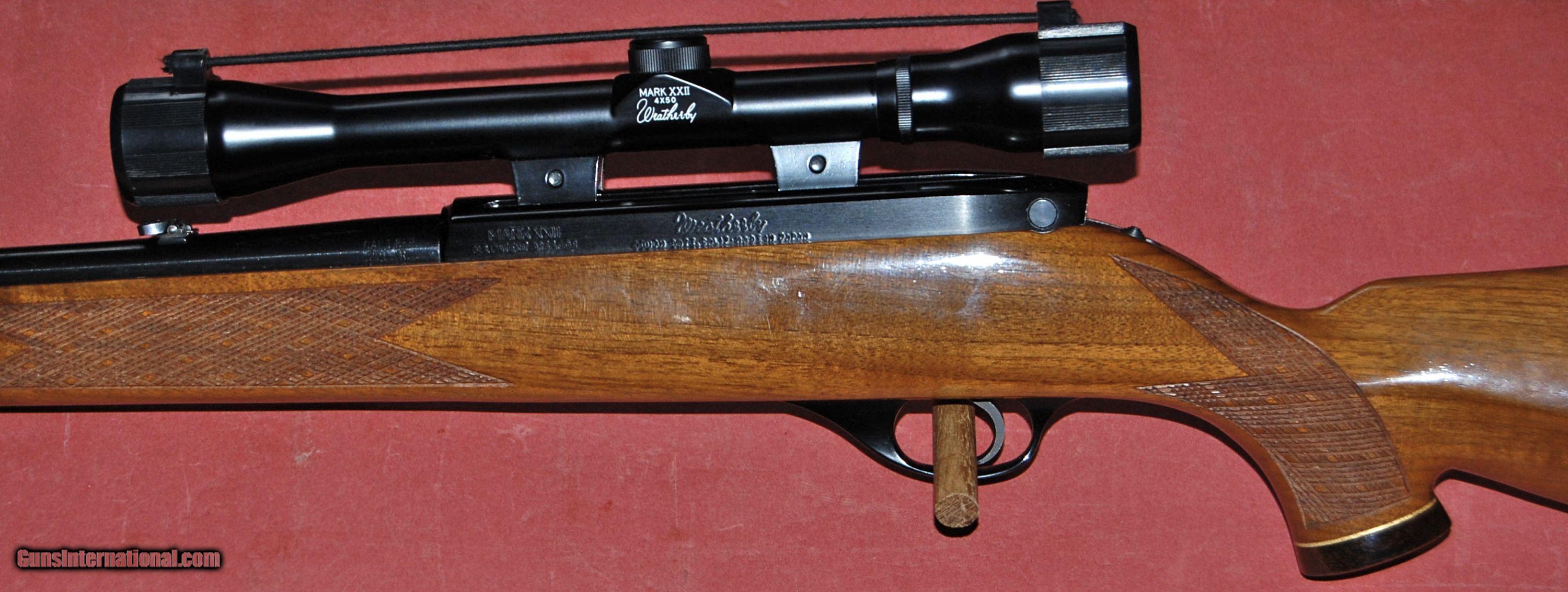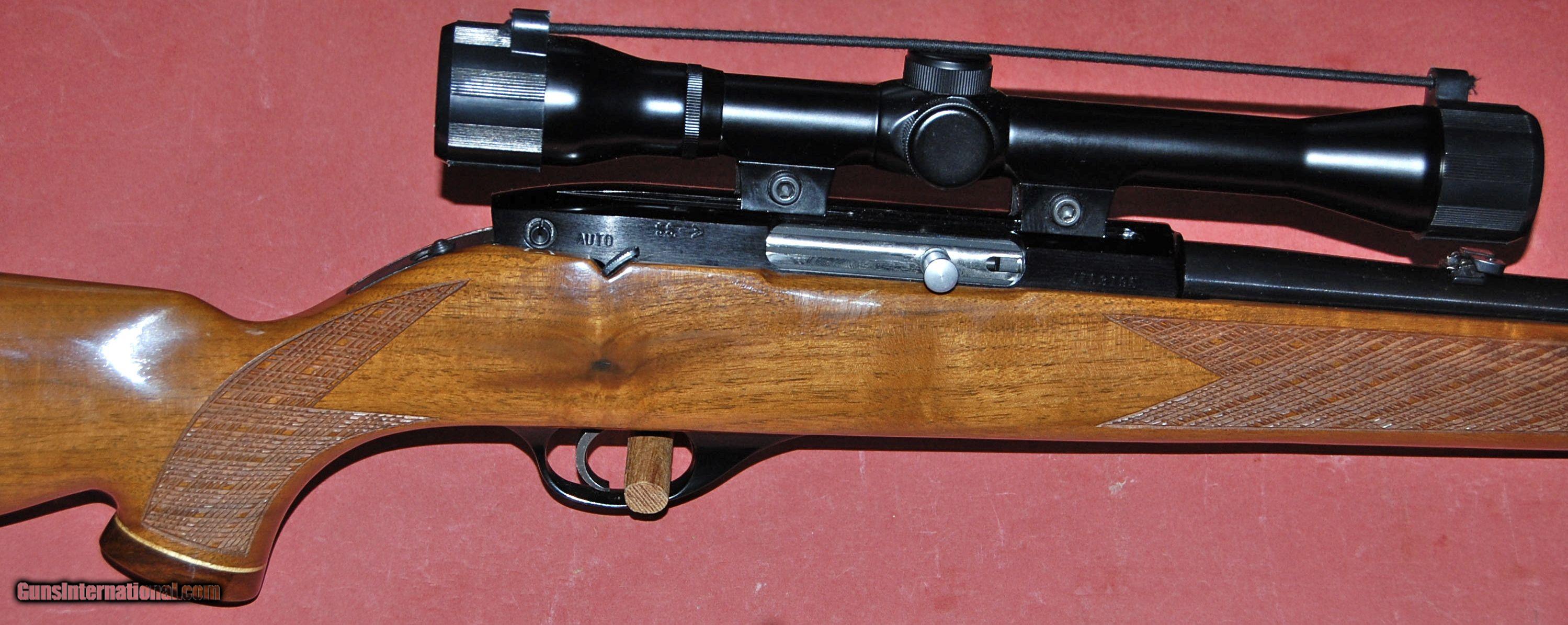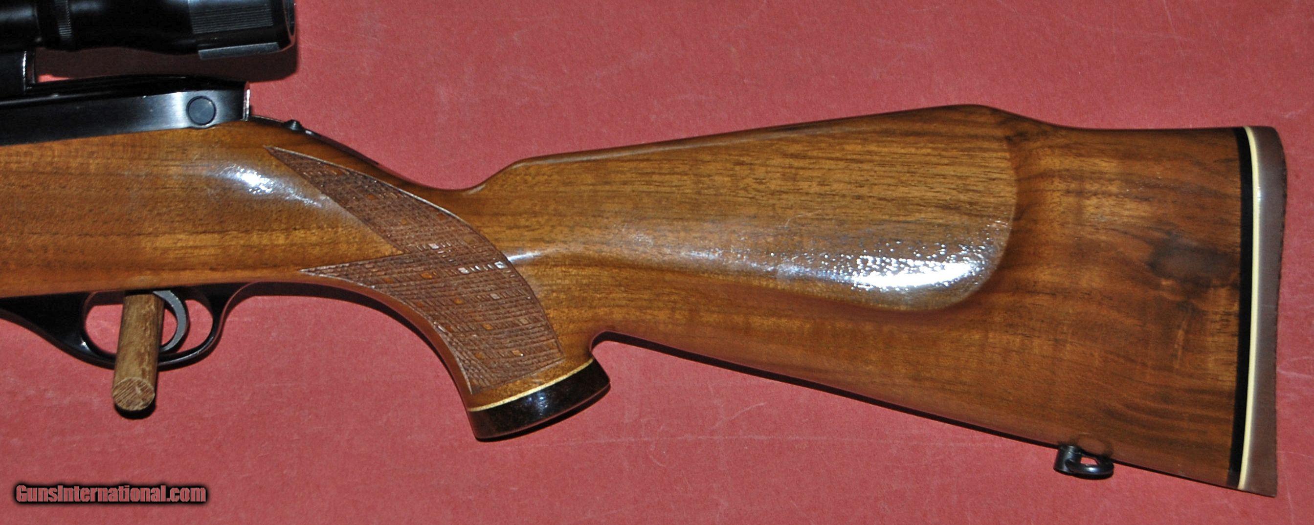 Description: Weatherby model XXII 22 long rifle semi auto with the scarce tube feed.This rifle appears to be unfired retaining 100% of the original blue and 100% of the original wood finish.The rifle shows no visible wear or signs of having been fired.It comes with a Weatherby 4X scope installed.A nice addition to a Weatherby collection or a high quality 22 for plinking or small game hunting. SOLD Manufacturer: Weatherby (Japan) Model: XXII Serial Number: JT53195 Caliber Info: 22 long rifle Metal Condition: new Wood Condition: new Bore Condition: new Action: semi auto |