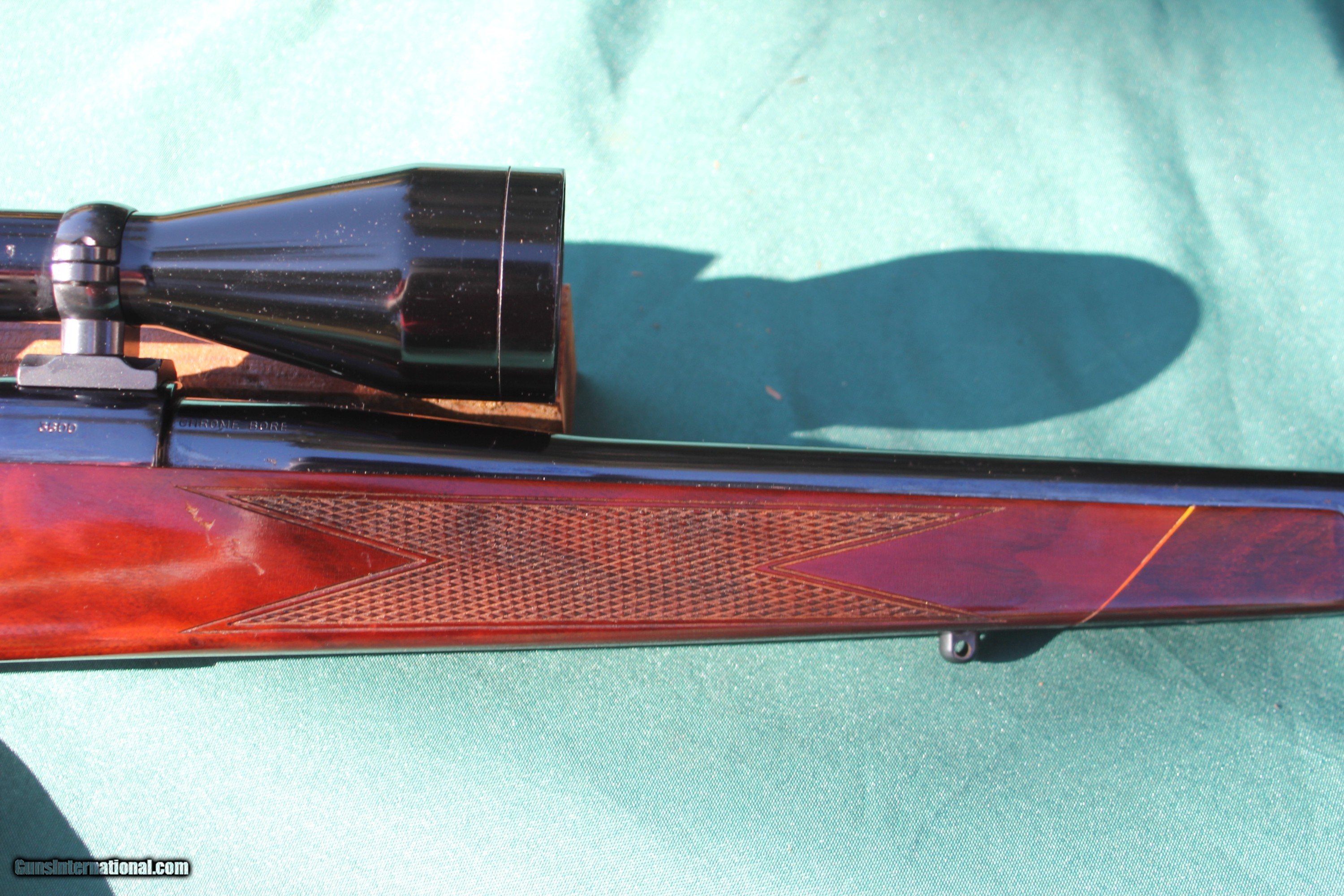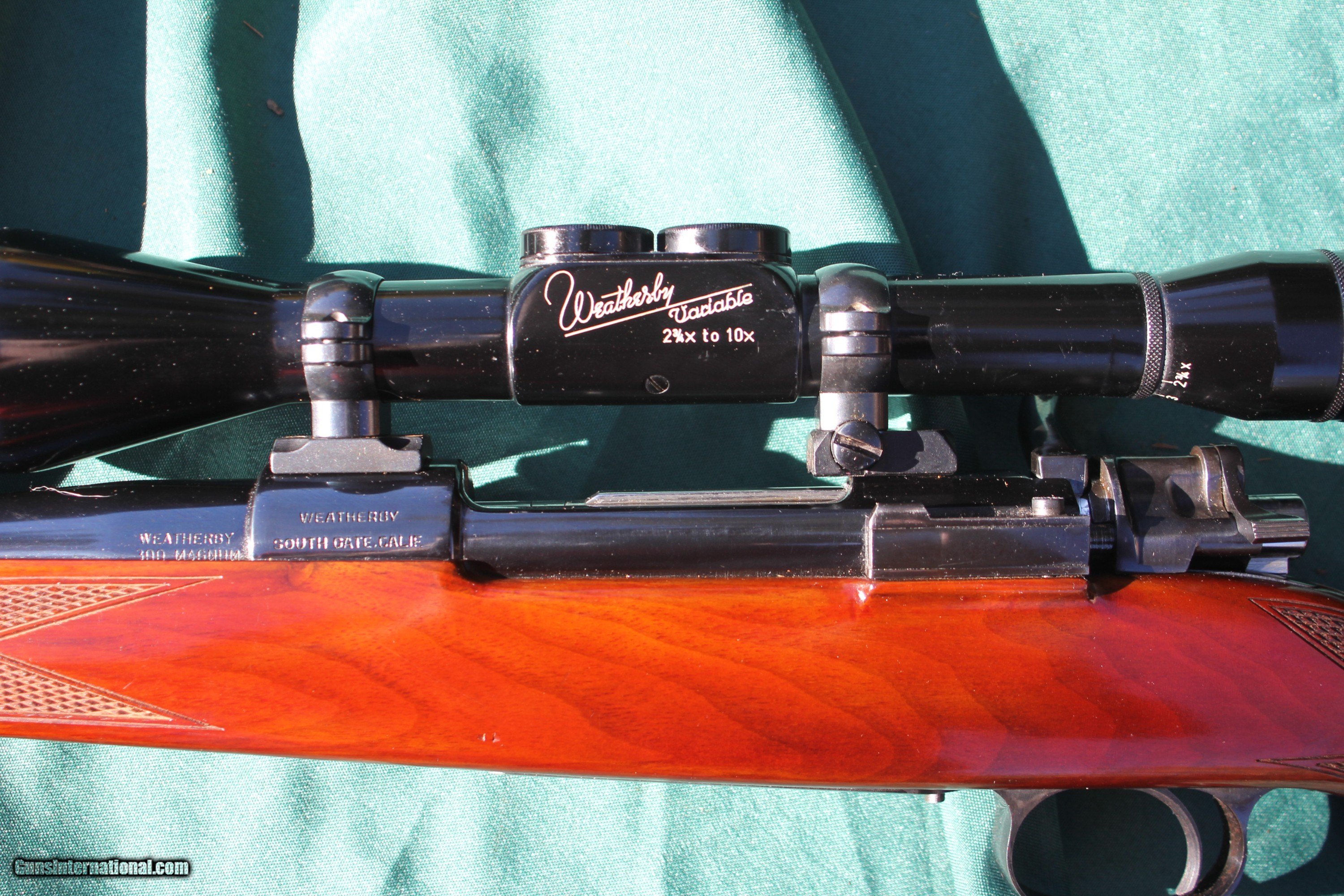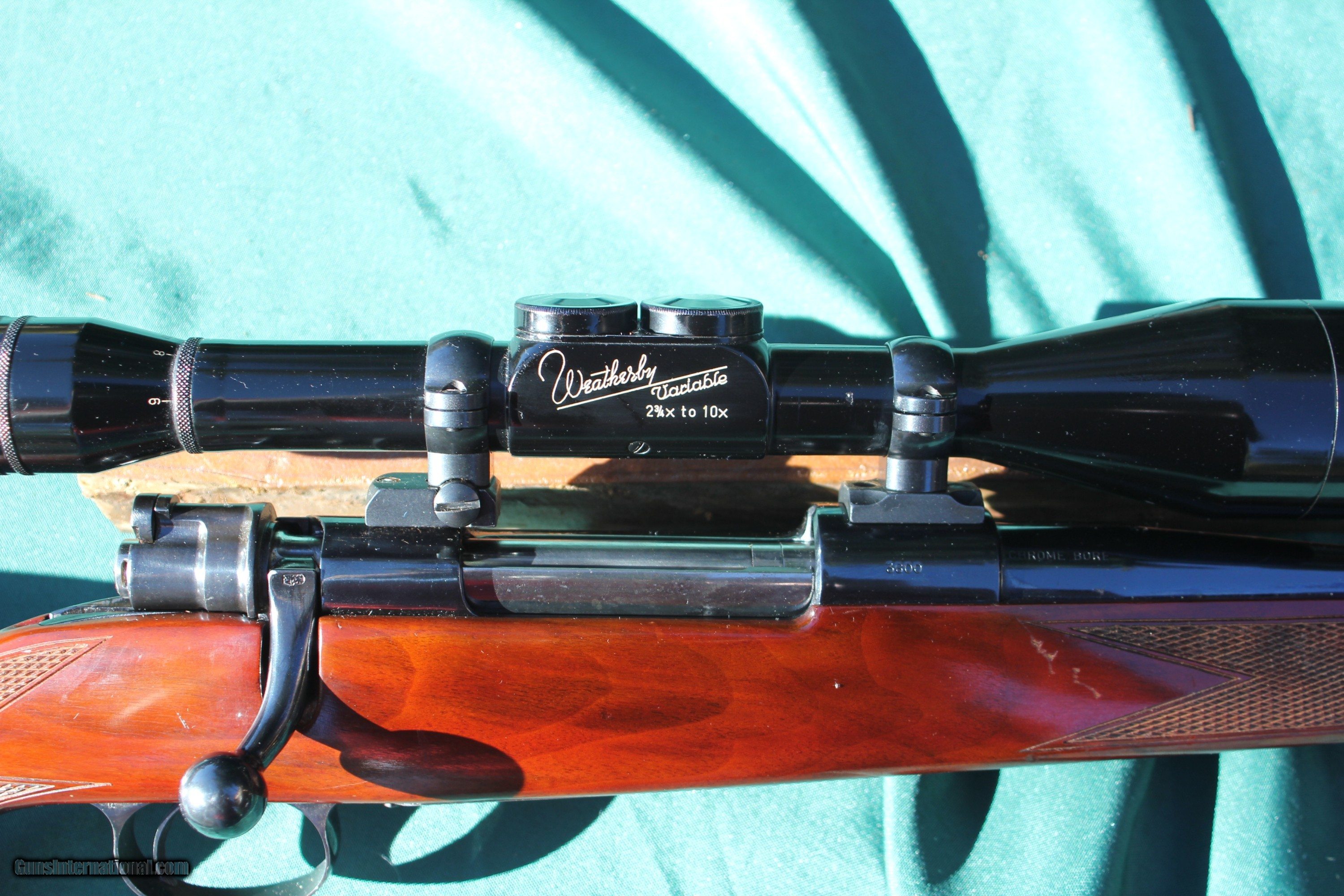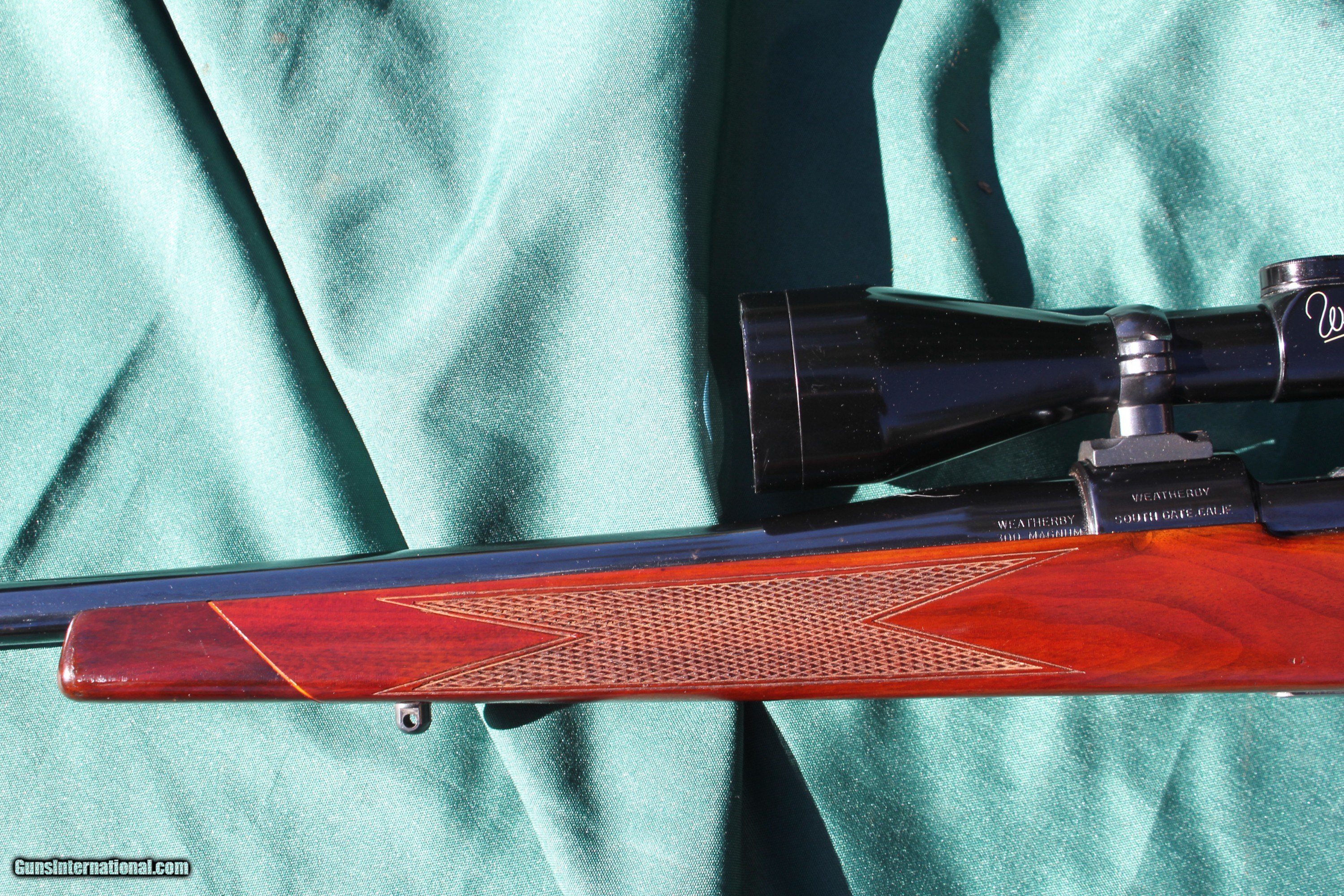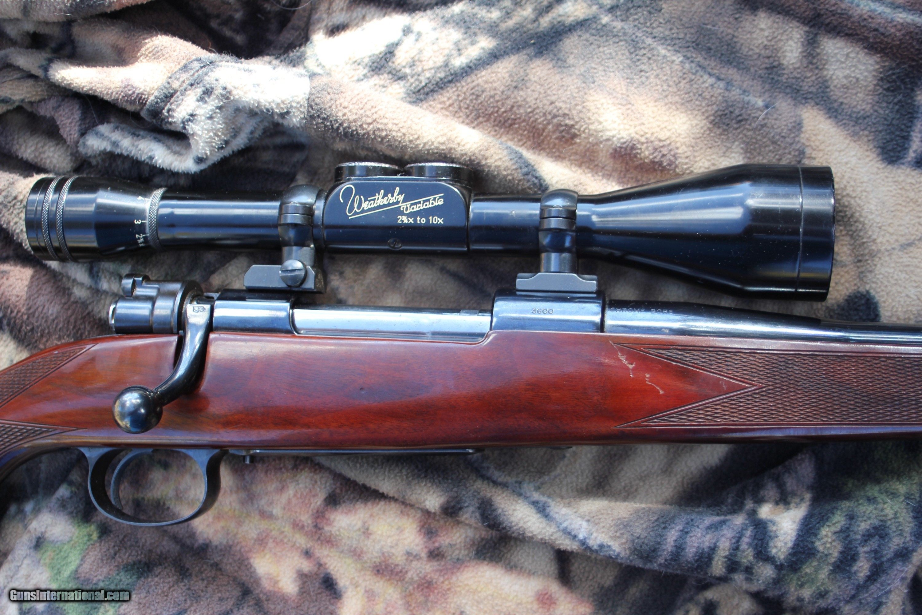 Description: Weatherby FN 300 Weatherby Magnum with Weatherby 2 3/4X10 in overall excellent condition. The 24 inch bore is as new with absolutly no erotion in the barrel or throat of the bore. The rifle bluing would scope an 8 out of ten with some minor rust on the floor plate (pictured). The stock has minor marks all pictured with no deep gauges or cracxks. The scope adjustment and power ring all work but the adjustments are very hard to turn. The cross hairs are centered and the scope is clear. The price reflects a very good scope with diffacult adjustments. SOLD Rifle Caliber: .300 Weatherby Magnum Manufacturer: Weatherby Model: FN Serial Number: 3600 Barrel Length: 24 Inches Condition: EXCELLENT Metal Condition: Very Good Wood Condition: Very Good Bore Condition: As new Action: Bolt Triggers: Adjustable LOP: 13 3/8 Weight: 8 Sights: Scope |