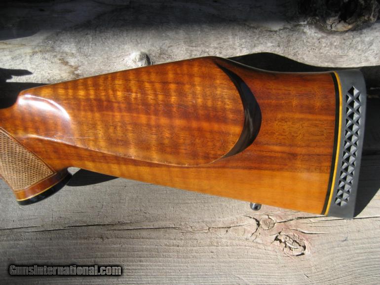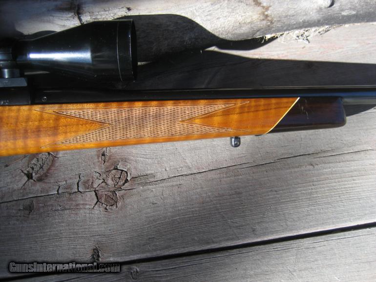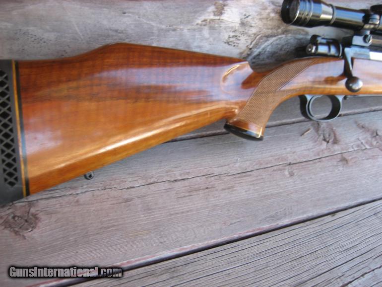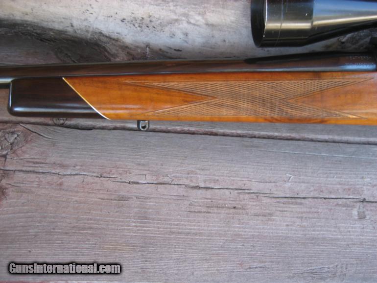Description: Older four digit 1952-1953 made before Roy invented the Mark 5 Action. The wood is in very good shape with scratches on the right side of the fore end tip and left rear side of the stock, all pictured. I would rate the stock at 95% condition with a 13 1/2 LOP. The metal is in excellent shape except for the floor plate and minor rubbing at the end of the barrel from taking it in and out of a case over the past 60 years. The barrel length is the more desirable 26 incher.Over all except for the floor plate in 98% rust free condition. The bore is as new checked with a Hawkeye Bore Scope. It comes with probably the original Weatherby 2 3/4x10 scope. The scope is clear with fine cross hairs. The scope tube looks like the scope slid forward at some time in its life and marked up the scope tube. The worst that I can say about this rifle is that the scope ring screw heads are messed up. Over all this is an original untouched collectible, shootable rifle that was carried a some shot very little, but the bore cleaned well cared for after shooting. Three day no shoot no messing with inspection period. If returned purchaser pays all shipping plus a 10% fee as I have described this rifle and scope in great detail with pictures. Shipping insured for $95.00 in a hard case. SOLD