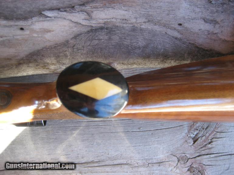 Description: Older four digit 1952-1953 made before Roy invented the Mark 5 Action. The wood is in very good shape with scratches on the right side of the fore end tip and left rear side of the stock, all pictured. I would rate the stock at 95% condition with a 13 1/2 LOP. The metal is in excellent shape except for the floor plate and minor rubbing at the end of the barrel from taking it in and out of a case over the past 60 years. The barrel length is the more desirable 26 incher.Over all except for the floor plate in 98% rust free condition. The bore is as new checked with a Hawkeye Bore Scope. It comes with probably the original Weatherby 2 3/4x10 scope. The scope is clear with fine cross hairs. The scope tube looks like the scope slid forward at some time in its life and marked up the scope tube. The worst that I can say about this rifle is that the scope ring screw heads are messed up. Over all this is an original untouched collectible, shootable rifle that was carried a some shot very little, but the bore cleaned well cared for after shooting. Three day no shoot no messing with inspection period. If returned purchaser pays all shipping plus a 10% fee as I have described this rifle and scope in great detail with pictures. Shipping insured for $95.00 in a hard case. SOLD |