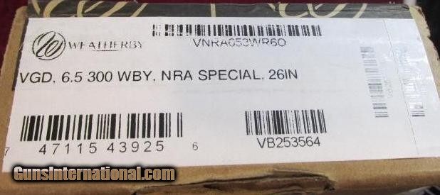 Brand New Weatherby Vanguard Wilderness w/NRA Seal Chambered in 6.5-300 Wby Rifle VNRA653WR60