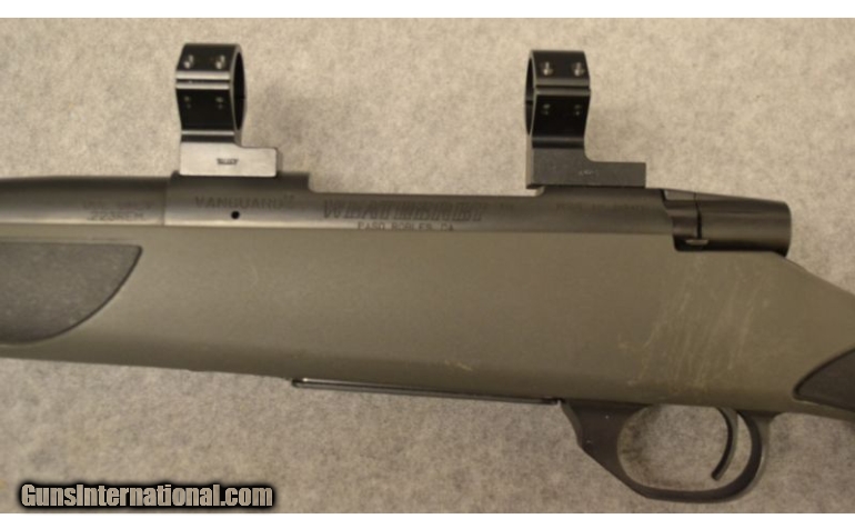 Description: Great rifle. Well built and strong actioned. Good choice for pursuing either medium or big game over vast distances. Ideal for either a Weatherby Fine Rifle collection. SOLD Manufacturer: SN: VB050198 Caliber Info: .223 REM. Metal Condition: Shows original finish with trivial handling marks and scabbard wear. Wood Condition: Shows original finish with trivial handling marks and field use. Bore Condition: Clean sharp lands. Barrels: 24 Triggers: Factory. Stock: Full Grey synthetic with Monte Carlo cheek piece, pistol grip, pistol grip cap, and black rubber grip texturing inserts. Stock Dimensions: 13 3/4" LOP. Fore End: Full Grey synthetic with black rubber grip texturing inserts. Butt Pad: Weatherby logo soft black rubber. Weight: 7 lb. 13 oz. Sights: None. Item Location: Anchorage, AK |