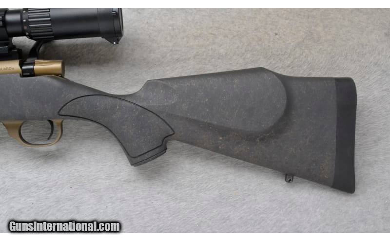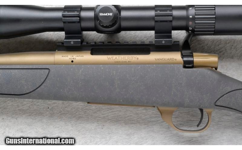 Description: This Weatherby Model Vanguard is a right hand bolt action rifle in .243 Win. Cal. It has a 24 inch threaded end barrel. It is outfitted with a Simmons Scope. The butt stock is a textured grip black polymer pistol grip with a raised cheekpiece and bronze webbing. The forearm is a textured grip black polymer with bronze webbing. .243 Winchester SOLD Chambers: Internal magazine with a hinged floorplate. Metal Condition: Excellent. Bore Condition: Excellent. Barrels: 24 inch with a threaded end. Stock Dimensions: LOP 13 1/2 inches. Fore End: Textured grip black polymer with bronze webbing. Butt Pad: Black Rubber. Weight: 9 lb. 0 oz. Sights: Simmons 4-16 Scope. Item Location: Richfield, WI |