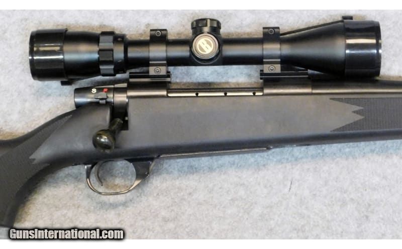 Description: Weatherby ~ Vanguard ~ Chambered in .25-06 Remington. Is a bolt action sporting rifle with a 5 round internal magazine. Features a 24" barrel paired with a Bushnell Banner 3-9x40 mm scope. Blued receiver and barrel are seated in a black polymer stock. .25-06 Remington SOLD Chambers: .25-06 Remington. Metal Condition: Very good condition. Bore Condition: Good condition. Barrels: 24" inches. Triggers: 4.25 pounds. Stock Dimensions: 13.25" LOP. Fore End: Polymer. Butt Pad: Rubber. Weight: 9 pounds Sights: Bushnell Banner 3-9x40 mm. Item Location: Acworth, GA |