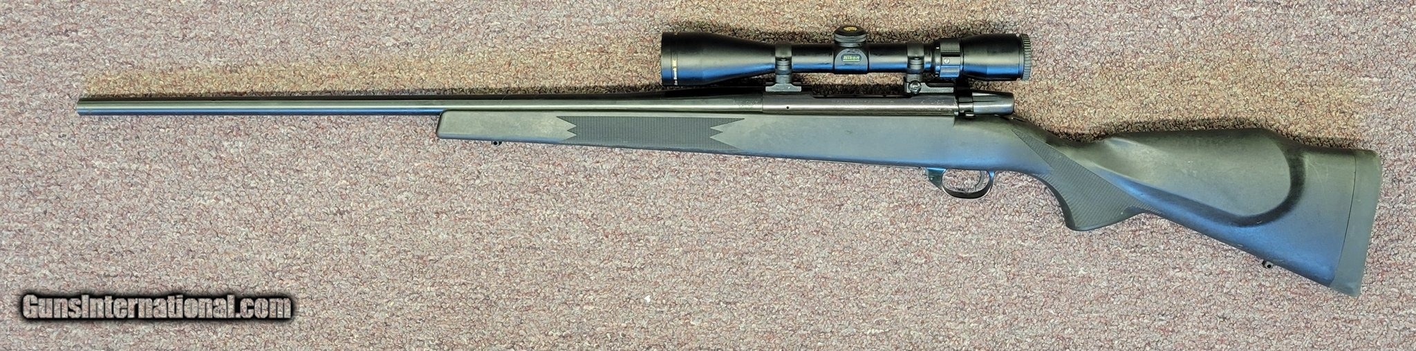 Description: Guns Listing ID: 1395803 Available - this perfectly clean Weatherby Vanguard bolt action rifle. Chambered in .30-06, it is topped with a fine, Nikon Monarch 3 - 9 x 40 scope on Leupold mounts and rings and has been bore sighted here in our gunsmith shop. The barrel is 24\" long and the chamber and bore are bright and clean. SOLD Manufacturer: WEATHERBY Model: VANGUARD Caliber Info: .30-06 SPRG Condition: Used - Non-Certified Barrels: 24 BARREL Finish: POLISHED BLUE |