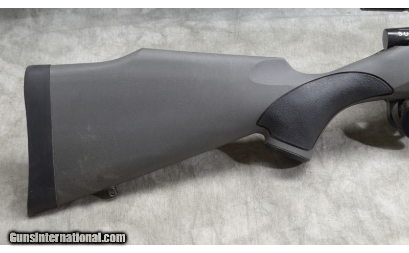 Description: This Vanguard features a polymer Monte Carlo stock with rolled over comb and inset grip panels. It is chambered in .300 Weatherby Magnum and includes a Swift 4-12x scope. SOLD Caliber Info: .300 Weatherby Magnum. Chambers: Internal box magazine with hinged floor plate. Metal Condition: Excellent. Very little evidence of usage. Wood Condition: Excellent, with very minimal signs of wear. Bore Condition: Shiny and bright. Barrels: 24 inch - matte black. Triggers: Factory grooved trigger. Stock: Monte Carlo gray/green polymer stock with black grip panels. Stock Dimensions: 13 - 1/2 Inch LOP. Fore End: Slim triangular cross-section. Butt Pad: Soft rubber pad. Weight: 8 lb. - 12 oz. as shown with scope. Sights: Swift 4-12x50mm wide angle scope. Extras: Scope. Item Location: Rogers,, MN |