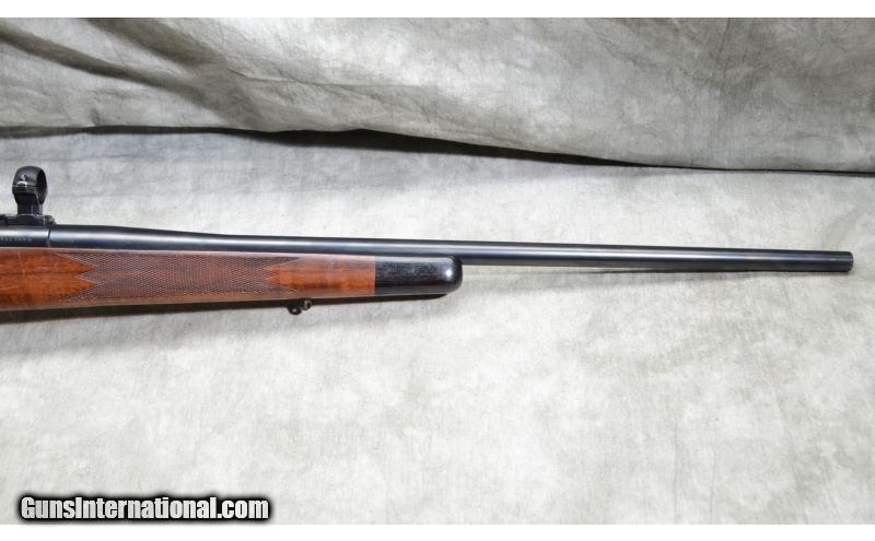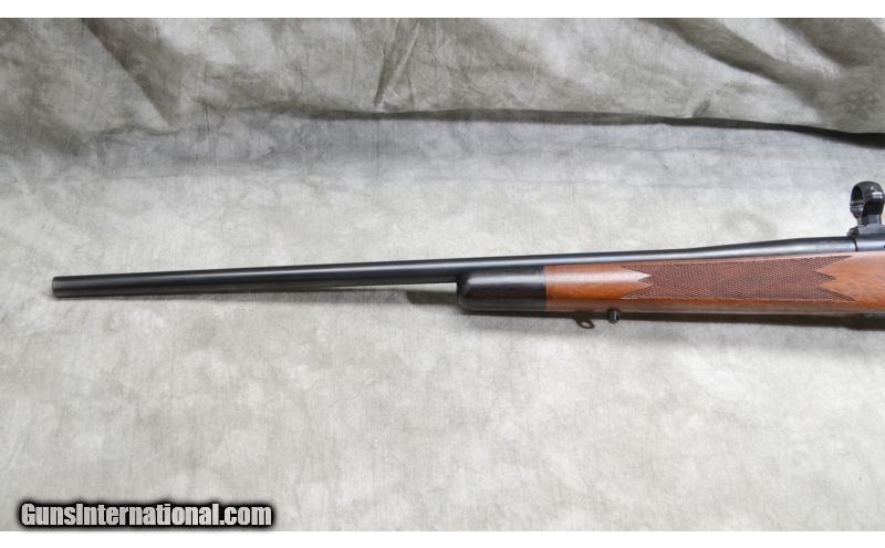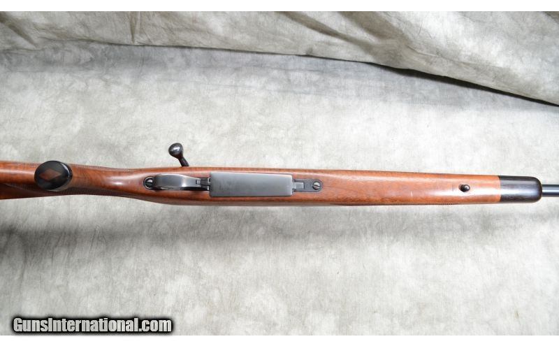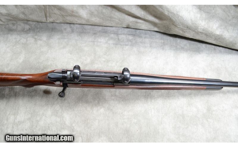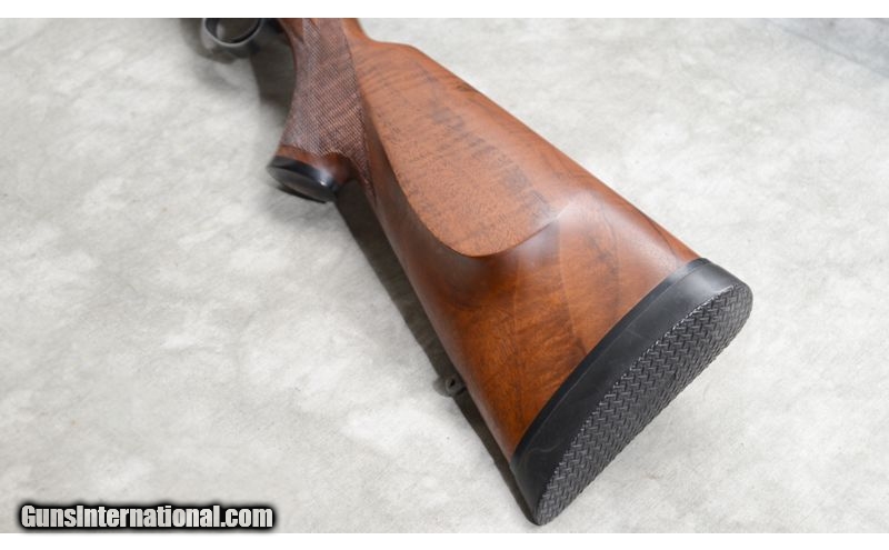 Description: This Weatherby features dark walnut stock with cheek piece and contrasting tip and grip caps, thick rubber pad and set up for your choice of scope. SOLD Caliber Info: .300 Weatherby Magnum. Chambers: 3 round internal magazine with hinged floor plate. Metal Condition: Excellent with little evidence of use. Wood Condition: Very good to excellent with a few shallow handling marks and scratches. Bore Condition: Shiny and bright with good rifling. Barrels: 24 inch, blue satin, without sights. Triggers: Factory grooved trigger. Stock: Checkered dark walnut with cheek piece and grip cap. Stock Dimensions: 13 - 3/8 inch LOP. Fore End: Tip cap. Butt Pad: Soft rubber pad. Weight: 8 lb. - 1 oz. Sights: Set up for your choice of scope. Extras: Scope rings and one piece base. Item Location: Rogers,, MN |