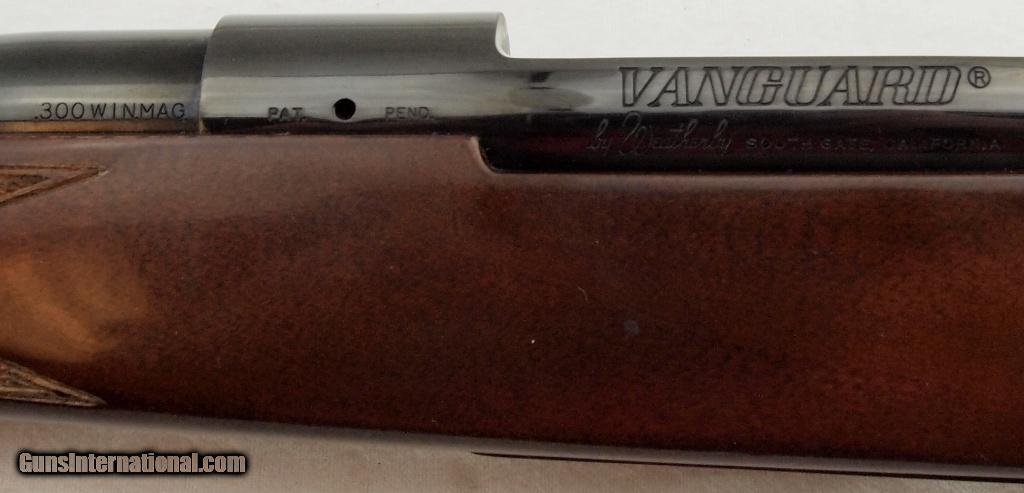 Description: Weatherby Vanguard, .300 WIN MAG, 24" bbl, bright shiny bore, good rifling, blued finish, drilled and tapped for scope mount, nice checkered wood stock, wood forearm cap, diamond in wood grip cap, and Weatherby thin red recoil pad. this rifle is in very good condition with light handling marks. Add 3% for Credit Card Shipping $25.00 SOLD |
