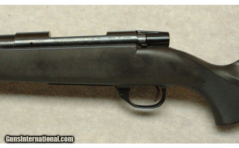 Description: Weatherby Vanguard Rifle .308 Win. Excellent condition, value priced rifle with a smooth action and crisp trigger pull. Good choice for hunting many game animals. SOLD Caliber Info: .308 Winchester. Chambers: Bolt action. Metal Condition: Excellent, light wear and handling marks. Wood Condition: Stock is in excellent condition. Bore Condition: Bright. Barrels: 24" Barrel. Triggers: Factory trigger. Stock: Black synthetic. Stock Dimensions: 13 1/4" LOP. Fore End: Checkered. Butt Pad: Factory recoil pad. Weight: 7 Lbs 8 ozs. Sights: Drilled and tapped for scope mounting. Item Location: La Vista, NE |