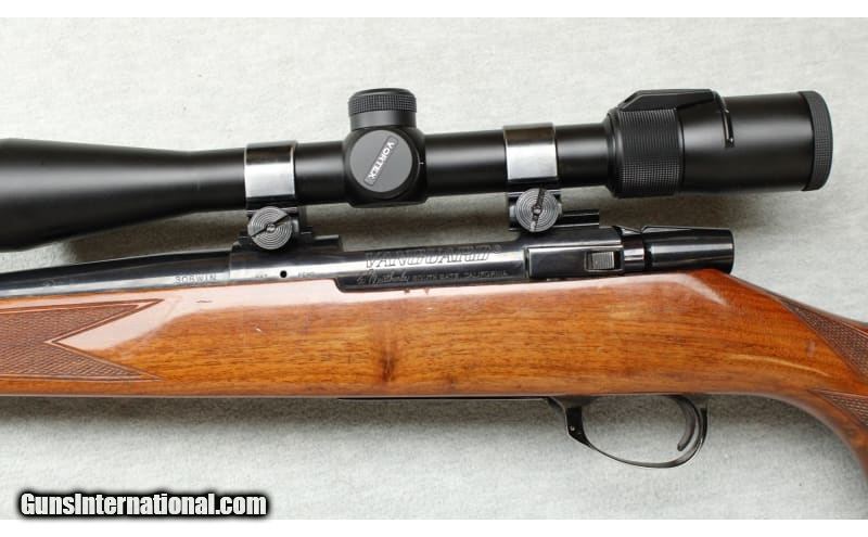 Description: Weatherby Vanguard chambered in .308 Winchester. Attractive gloss blued barrel and action in a walnut Monte Carlo stock with checkering, and rosewood forend and grip cap with maple spacer. It has sling studs and a Weatherby marked butt pad. The .308 Winchester is a smokeless powder rimless bottlenecked rifle cartridge widely used for hunting, target shooting, police, military, and personal protection applications globally. It is similar, but not identical, to the 7.62×51mm NATO cartridge. .308 Winchester SOLD Metal Condition: Very good Wood Condition: Very Good Bore Condition: Bright Barrels: 24 Inches Triggers: Factory Stock Dimensions: LOP 13 1/4 Inches Fore End: Checkered walnut Butt Pad: Hard rubber pad Weight: 9 lbs 6 oz Sights: Vortex Viper 4-12 x 40 Item Location: La Vista, NE |