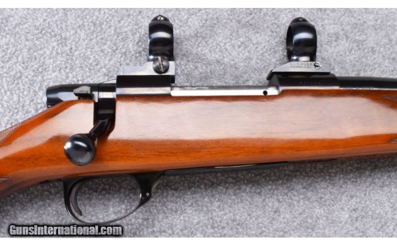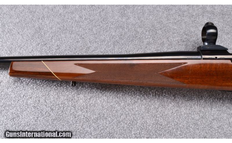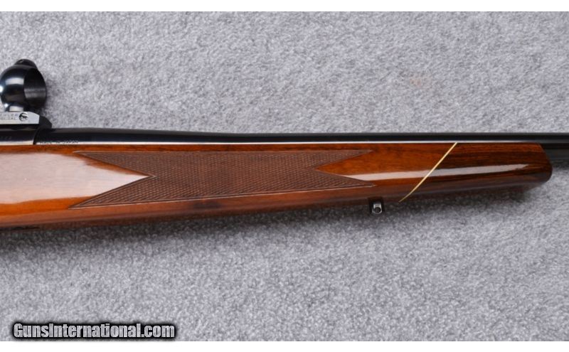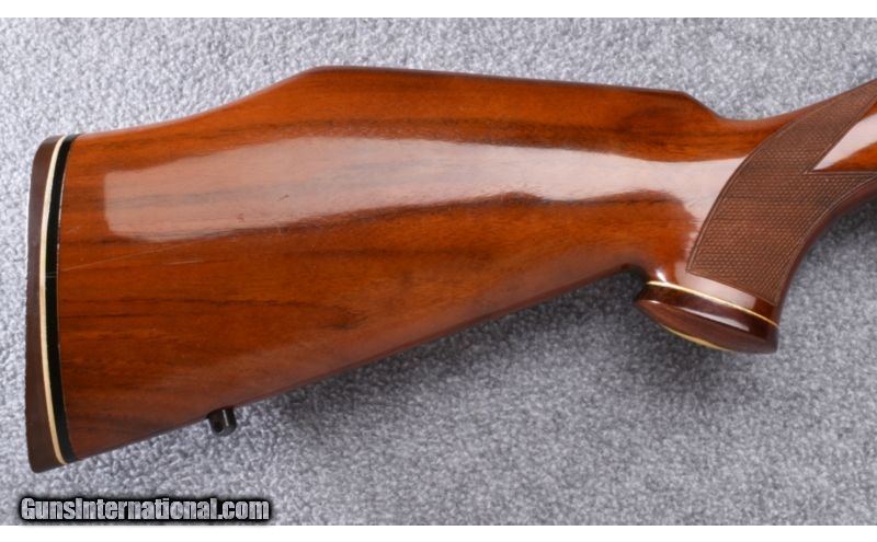 Description: Wood shows some light carry marks on the left side under the receiver. Remainder is excellent throughout. Complete with rings and bases. SOLD Manufacturer: S/N V07XXX Caliber Info: .243 Win. Metal Condition: Excellent Wood Condition: Good Bore Condition: Excellent Barrels: 24 Triggers: Factory Stock: Checkered Walnut Pistol Grip with Rosewood Cap Stock Dimensions: 13 1/4" LOP Fore End: Checkered Walnut with Rosewood Cap Butt Pad: Brown Rubber Weight: 8 1/2 LB Sights: None - Rings & Bases Included Item Location: Wheeling, WV |