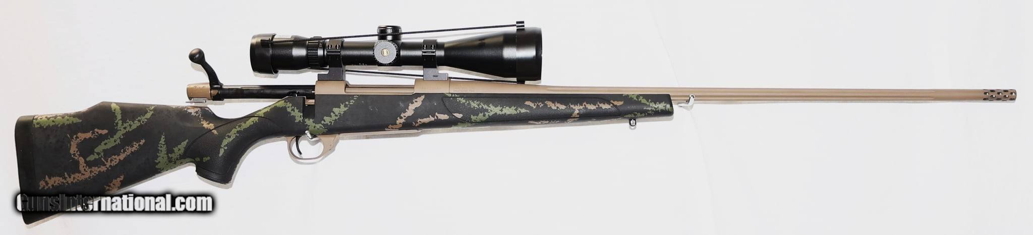 Description: Guns Listing ID: 558254 Pre-owned Weatherby Vanguard model High Country chambered in .300 Wby Mag. This rifle is topped with a Bushnell Elite 4.5-30x50mm scope. This rifle is in excellent condition. It appears unfired but has some handling marks. The first thing you’ll notice about the Vanguard High Country, aside from Weatherby’s legendary fit and finish, is the stock. The Monte Carlo design, complete with a right-side palm swell and textured forearm and grip areas, is appointed with tan & green Accents. FINISH Barrel/Receiver/Bolt/Bolt Knob/Safety – FDE Cerakote Stock – Black polymer Monte Carlo stock with tan and green sponge accents Caliber: .300 WIN Weight: 7.25lbs. Overall Length: 48.5“ Mag capacity: 3+1 Barrel Contour: #2 Barrel OAL: 28\" (26\" barrel + 2\" muzzle brake) Twist Rate: 1:10“ Length of Pull: 13.5“ Bushnell Elite: Magnification: 4.5-30x50mm Reticle: DOA 600 They say a picture is worth a thousand words. These photos are the best statement of condition; please review them carefully before purchasing. SOLD Manufacturer: WEATHERBY Model: VANGUARD HIGH COUNTRY Caliber Info: .300 WBY MAG Condition: Used - Non-Certified Barrels: 26 BARREL Action: BOLT ACTION Finish: BLACK WITH TAN AND GREEN SPONGE PATTERNS |