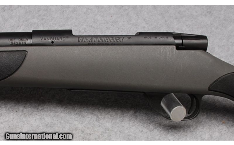Description: This is a Weatherby Vanguard II rifle in .243 Winchester. Condition of this rifle is Excellent with a few blemishes. A close up of the stock where some of the rubber inlay has pulled away is provided. This rifle has not been fired since leaving the factory and comes with the Weatherby box. SOLD Caliber Info: .243 Winchester Metal Condition: Excellent with a Few Blemishes Bore Condition: Bright and Shiny Barrels: 24 Stock: Synthetic with Rubber Inlays Stock Dimensions: LOP: 13 1/2 Butt Pad: Factory Rubber Sights: Drilled and Tapped for Scope Mounts Extras: With Weatherby factory box Item Location: Reno, NV |