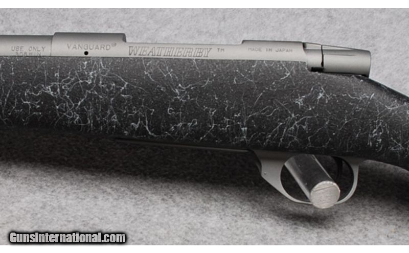 Description: This is a Weatherby Vanguard rifle in .308 Winchester. This rifle has a 24 inch fluted barrel and a composite stock with spiderweb accents and a Decelerator pad. Condition is Excellent with a shiny bore. This is an as new rifle with the Weatherby factory box. SOLD Caliber Info: .308 Winchester Metal Condition: Excellent, as New in Box Bore Condition: Bright and Shiny Barrels: 24" Fluted Stock: Composite with Spiderweb Accents Stock Dimensions: LOP: 13 5/8 Butt Pad: Decelerator pad Sights: Drilled and Tapped for Scope Mounts Extras: Comes with the Weatherby factory box Item Location: Reno, NV |