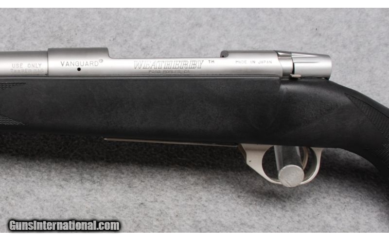 Description: This is a stainless steel Weatherby Vanguard Sub MOA rifle in 7MM Remington Magnum with a 24 inch barrel. This rifle is marked Factory Second. The synthetic stock shows some discoloration and scuffing. Condition is As New with the Weatherby factory box. SOLD Caliber Info: 7MM Remington Magnum Metal Condition: As New Bore Condition: As New Barrels: 24 Stock: Synthetic Stock Dimensions: LOP 13 1/4 Butt Pad: Weatherby Factory Rubber Sights: Drilled and Tapped for Scope Mounts Extras: Comes with the Weatherby factory box Item Location: Reno, NV |