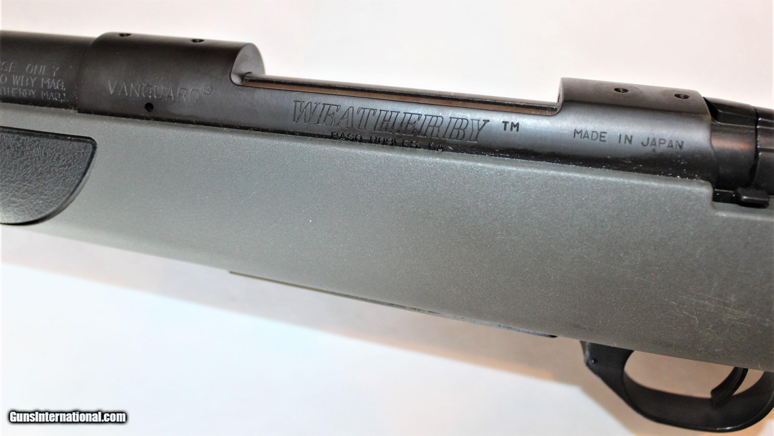 Description: Price Reduced NEW IN BOX Weatherby Vanguard Sub M.O.A Blued Bolt-action rifle chambered in .300 Weatherby Mag, with hinged floor plate. Firearms are transferred to FFL Dealers ONLY. SOLD Manufacturer: Weatherby Vanguard Model: Sub MOA Serial Number: VB034451 Caliber Info: .300 Weatherby Mag. Condition: New Metal Condition: New Bore Condition: New Barrels: 24 Action: Bolt Rifle Stock: Grey Griptonite with textured pistol grip inserts and sling studs Fore End: Grey Griptonite with textured handhold inserts Finish: Blue Sights: No sights, does not come with scope Extras: New in box Item Location: Thorp, WI |