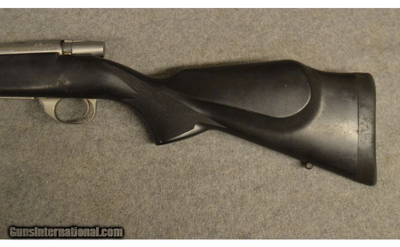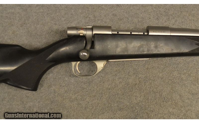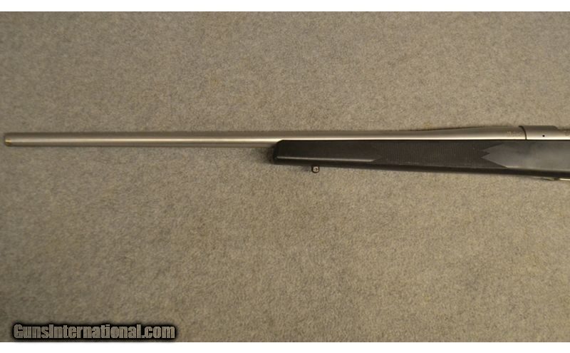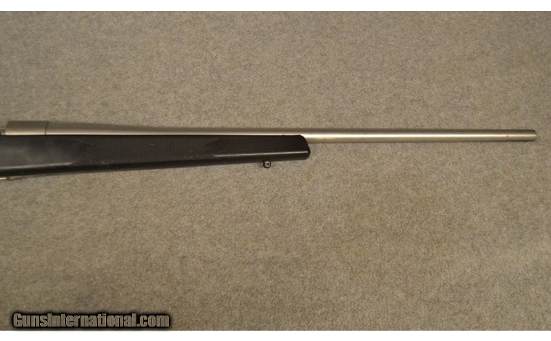 Description: Satin stainless steel action/barrel, black synthetic stock, includes many Mark V features, including one-piece fluted bolt with 3 gas ports, 2 locking lugs, and 90-degree bolt lift, 3 or 5 shot mag., 24 in. barrel, adjustable trigger. .223 Remington SOLD Chambers: .223 Remington Barrels: 24" Stainless Butt Pad: Rubber Weatherby Butt pad Sights: Drilled and tapped for scope bases Item Location: Greenville, SC |