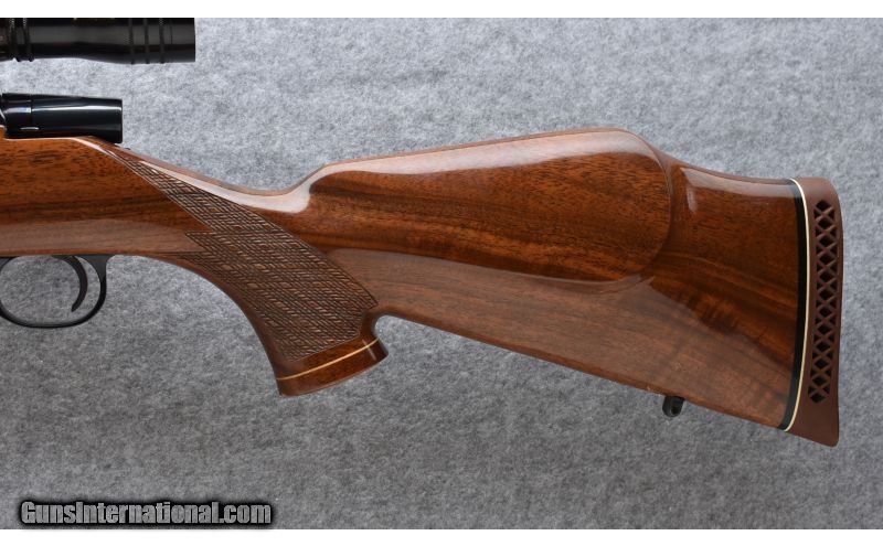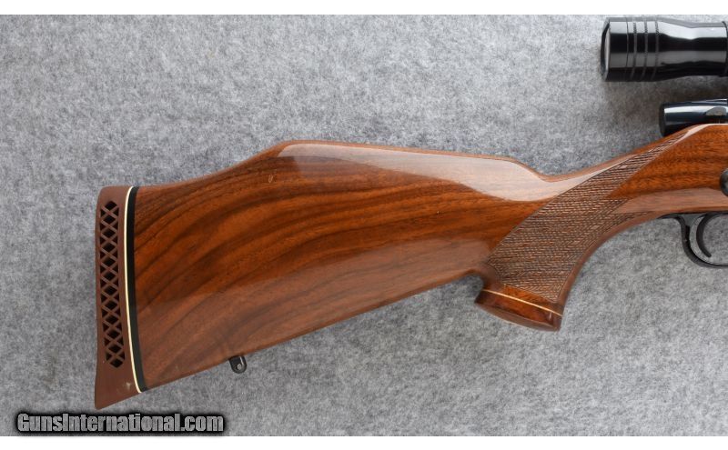 Description: .300 Weatherby Magnum SOLD Caliber Info: .300 Wby. Mag. Metal Condition: Factory finish remains good to very good, overall, and shows light streaks and contact marks here and there. Wood Condition: Shows minor marks from handling and use. Also shows a repair in an odd place; through the lower wrist about 1 1/2" above the grip cap. That entire piece has been glued back in place. Barrels: 24 Stock Dimensions: 13 5/8" LOP Butt Pad: Factory Sights: Redfield Widefield 3 - 9x w/ Duplex Reticle Item Location: Post Falls, ID |
