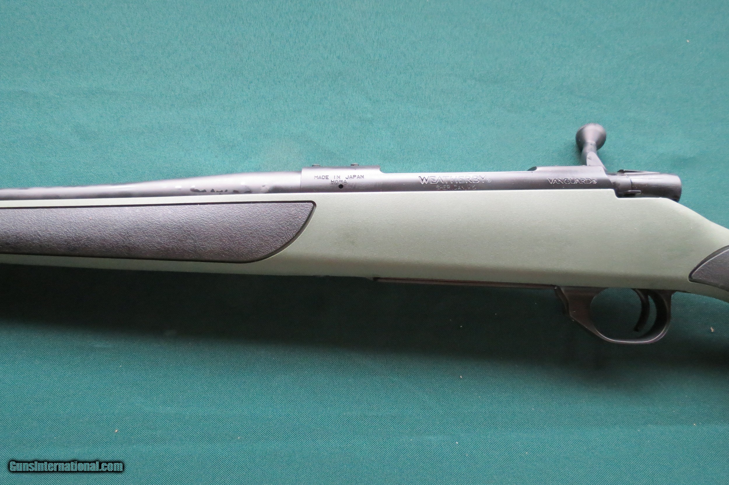 Description: New in Box Weatherby Vanguard 25-06 Remington. Green synthetic stock, 24" barrel, 5 round magazine, Hinged floorplate, 1:10" Rate of Twist. Shipping/Insurance $40 SOLD Rifle Caliber: .25-06 Remington Manufacturer: Weatherby Model: Vanguard Barrel Length: 24 Condition: New in Box |