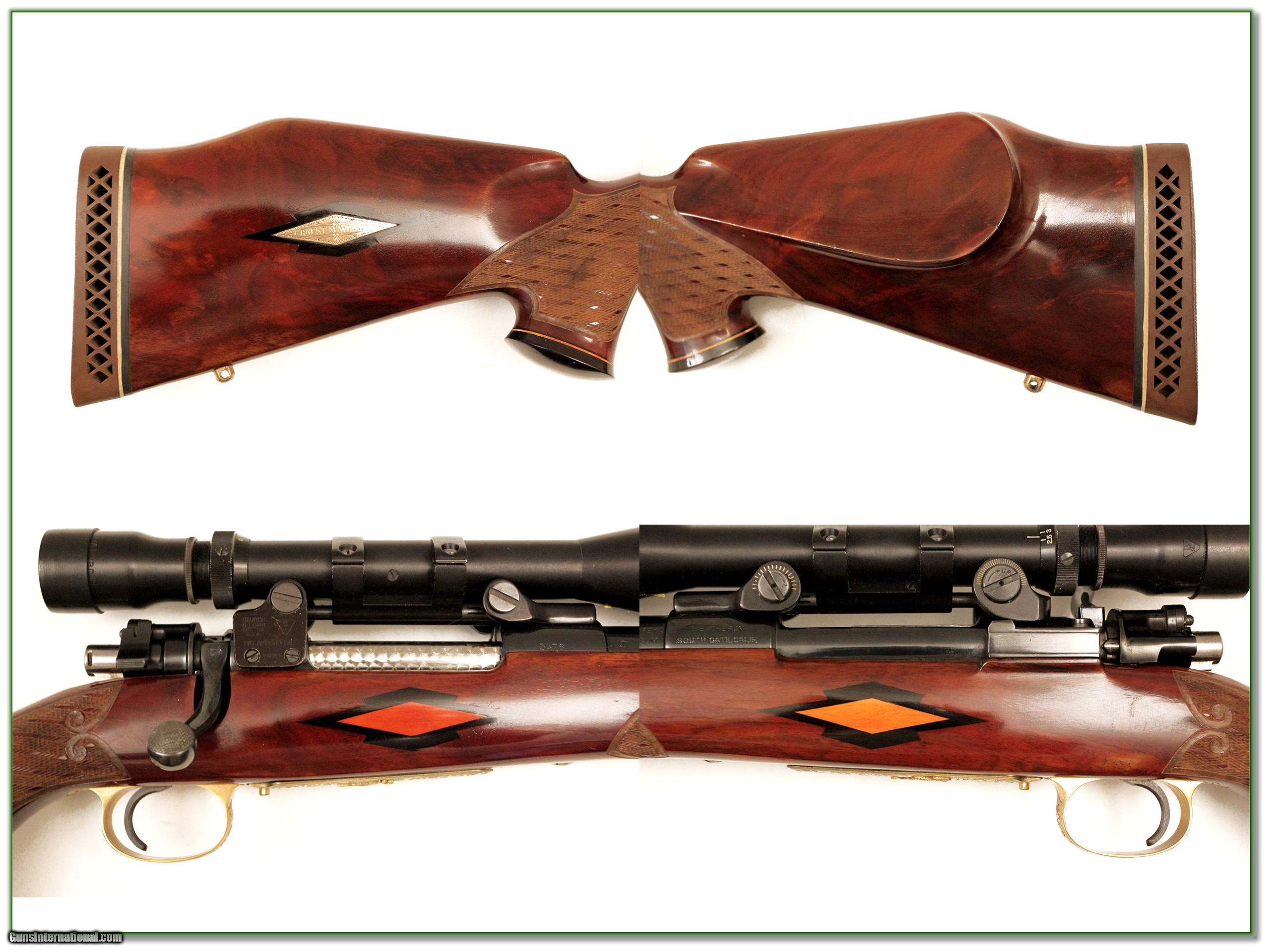 Description: Collectors, this is a beautiful early Weatherby built on a Mauser action in 300 Wthy Magnum. It was made in 1956. This is a Custom Shop gun with Crown stock and gold plated engraved floorplate. It comes with period B&L scope and Weatherby case. It will make a fine addition to your collection! I am selling this one on consignment and as such lay-a-way can’t be used. It does of course have the standard 3 day inspection. Shipping and insurance is $55. Please email me with any questions or larger pictures. (I now consign quality firearms only 10%! Let me know if you have any you would like to sell!) [16-0512] Payment: Payment is by Money Order, Cashiers Check or Personal Check. I can now also accept MasterCard and Visa with a 3% convenience fee. PayPal can be used for some items but never firearms. Please let us know if you would like to pay via PayPal. Shipping: The shipping charge will be listed in each description. It is $35 for most guns. Some heavy guns or those insured for over $2000 will be higher. Shipments to Alaska and Hawaii are higher because air shipment is required. Most firearms are shipped within 5 days of receipt of payment. We prefer shipping at the beginning of the week to avoid firearms in transit over weekends. We package all shipments carefully and insure them for the full purchase price, rounded up to the next $100. In the unlikely event that damage occurs, it is important that you save all packaging material for the claims process. Optics are shipped Priority Mail and most other non-firearm shipments are shipped First Class. Returns: Our return policy is simple. If for any reason you are not pleased with your purchase, you may return your item for a refund. The only exception is ammunition, it cannot be returned. It is important to us that you are happy. Guns cannot be fired or dissembled before returning them and must be returned in the same condition as received. Notification of a return must occur with-in 3 days of receipt at your dealer. Shipping, convenience and dealer fees are not refundable and are the responsibility of the buyer. Lay-a-way: If needed, we offer a 60 day lay-a-way option on most firearms. It is 1/3 now, 1/3 in 30 days and 1/3 in 60 days. Lay-a-way firearm sales are final. Consigning your firearms with Shooting Investments: We will help you get top dollar for your firearms. While most local guns shops charge 20% or more, our fee is only 10% with a minimum of $50. At your local gun shop it might take months to sell. Selling on-line provides instant access to thousands of interested buyers. You won’t find any other on-line dealer willing to sell your firearms for only 10% or listing every gun on 4 separate s. Selling through an House typically costs the seller 15% and the buyer an addition 15% (so 30%) and you have to wait several months to sell and longer to receive funds. If properly priced, we will sell your firearms in a week or two. Send us an email or give us a call and we’ll explain how easy it is for you to get top dollar. Trading: We collect guns and usually just trade for guns we want to add to our collections. We often sell guns for others wanting to purchase one of ours. We find this the most fair to both of us. Our Commission is only 10% and we hold the gun you want until yours sells. Please contact us if you want to sell one of yours to buy one of ours. Help for California Buyers: We are happy to ship to California. It is the buyer’s responsibility to make sure any item you buy is legal in your state. We are also happy to help with your purchase of a firearm from someone other than us. If you see a gun you would like to buy but the seller can’t or won’t ship to California we can help. You buy the gun and have it shipped to us. We’ll then ship it to your California dealer. The cost for this service is only $30 + shipping. Let me know if we can help! SOLD |
