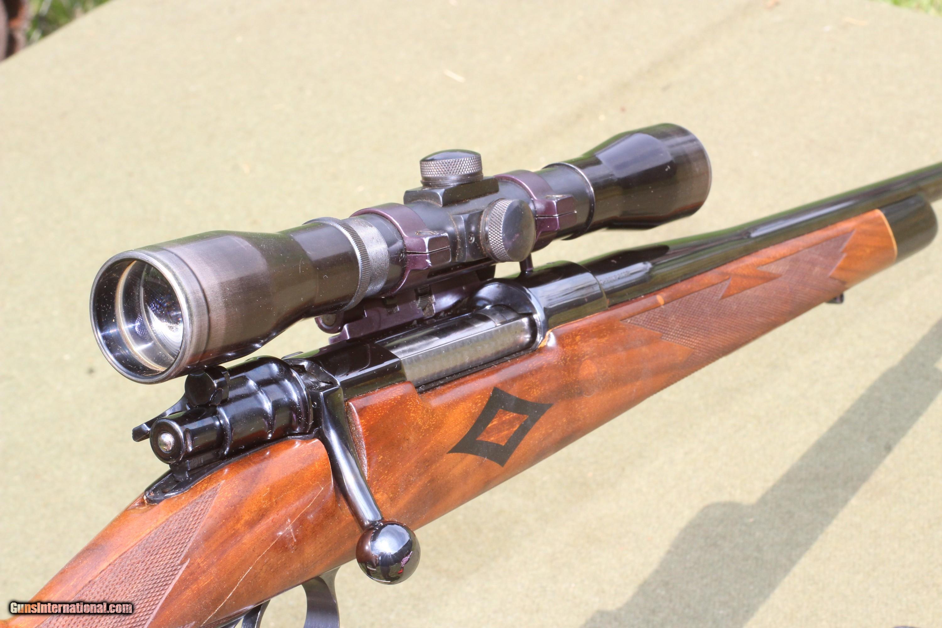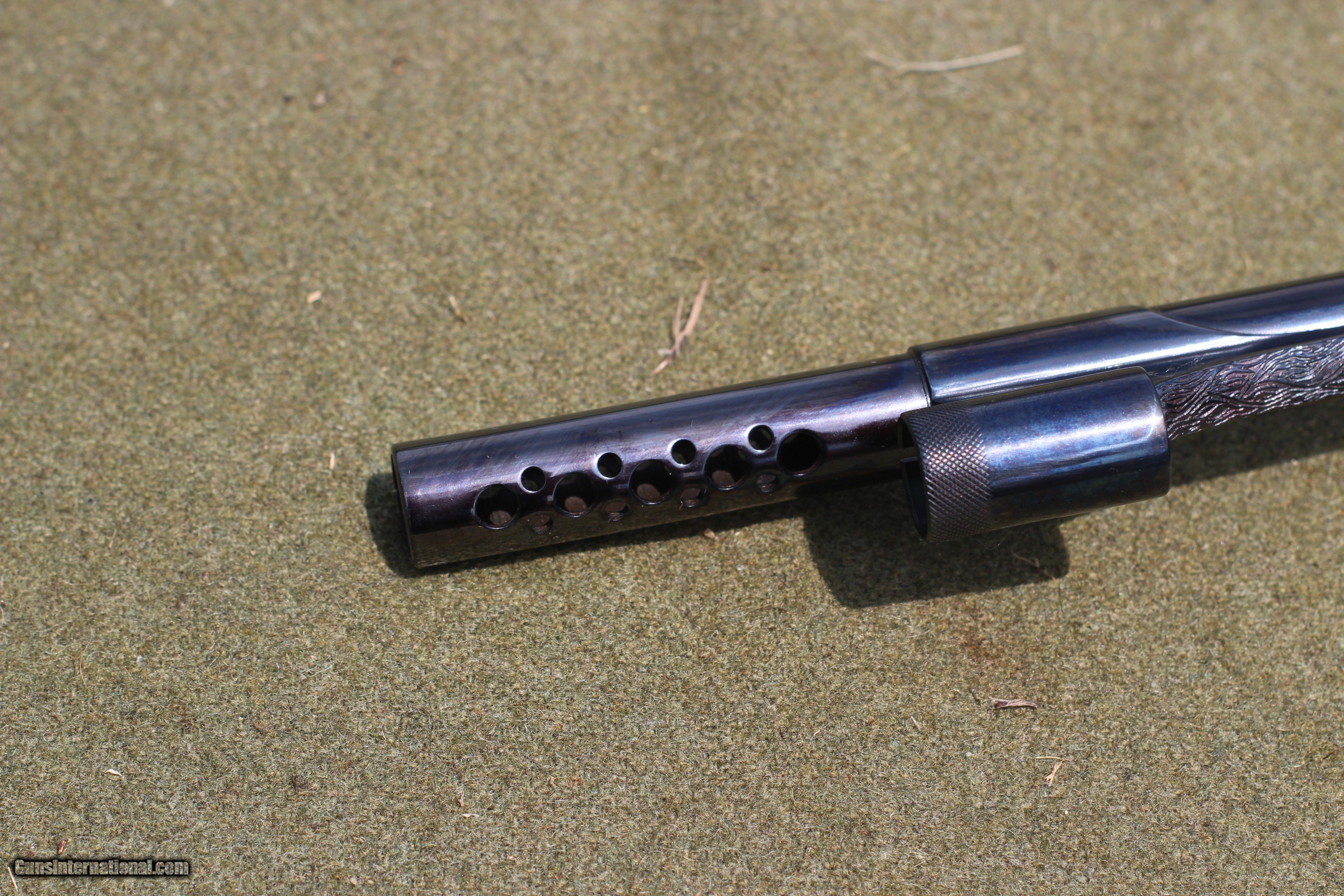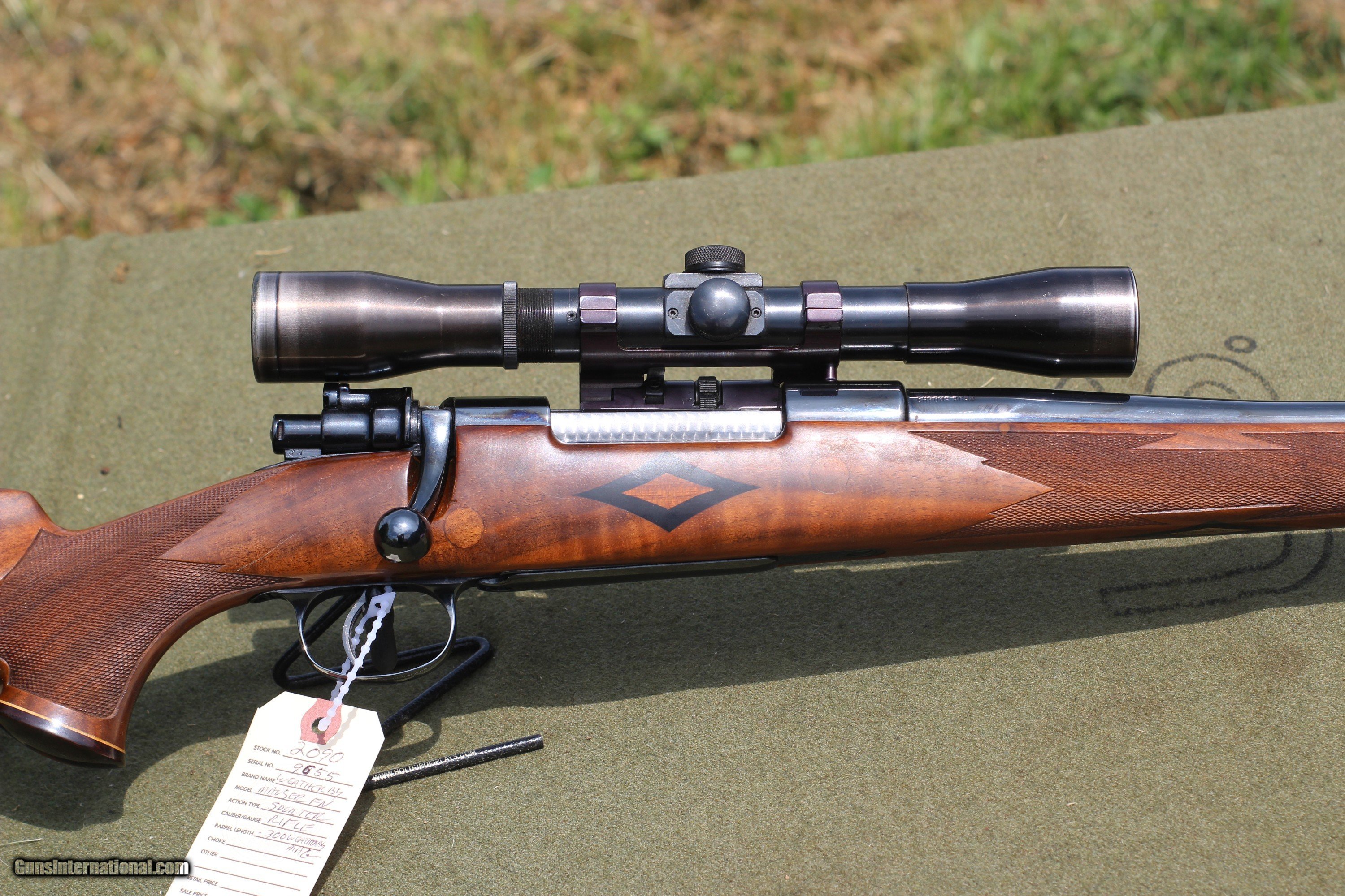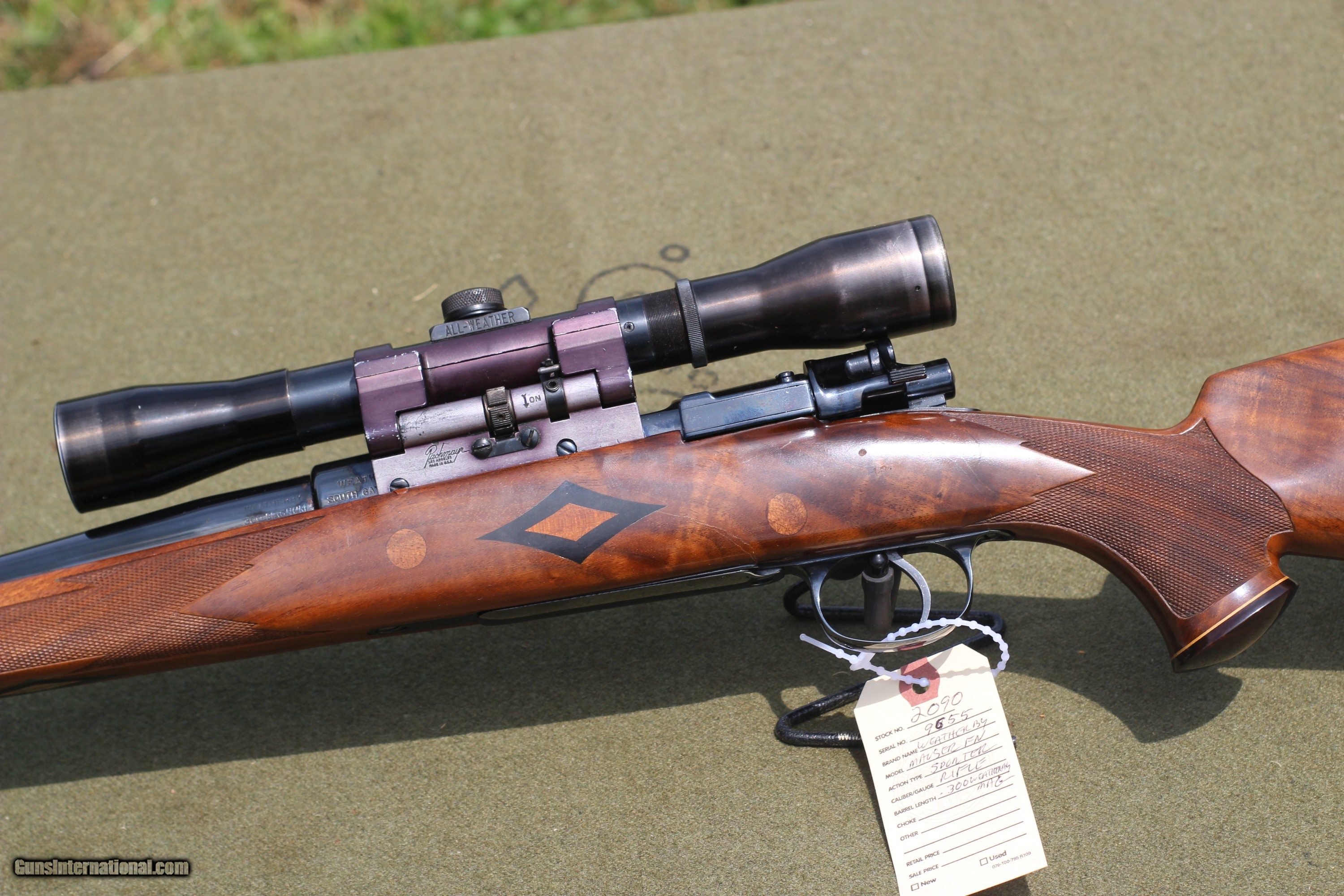Description: Circa 1952 Serial #9655 23 1/2" barrel with excellent bore High polish bluing with muzzle brake Side mount Pachmyer scope system High grade Claro Walnut wood , with 5 pattern checkering and stock and forend inlays Collectable Weatherby Mauser $ 1995 + Shipping SOLD |