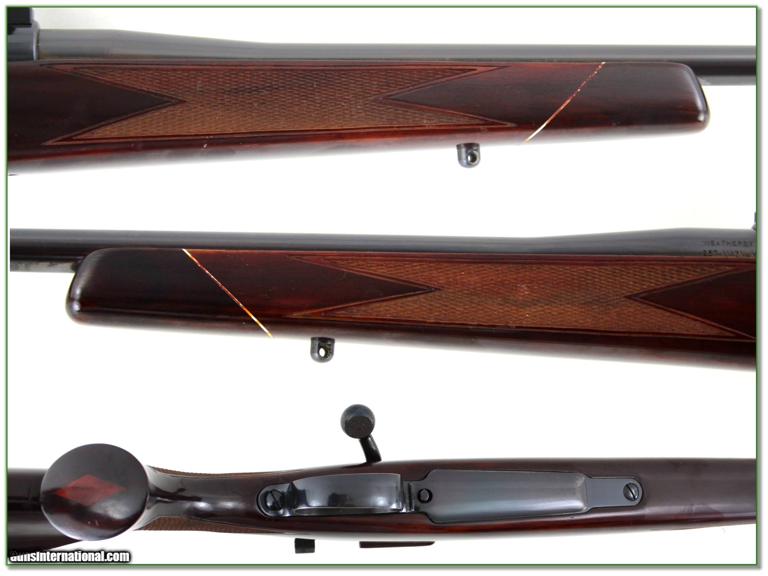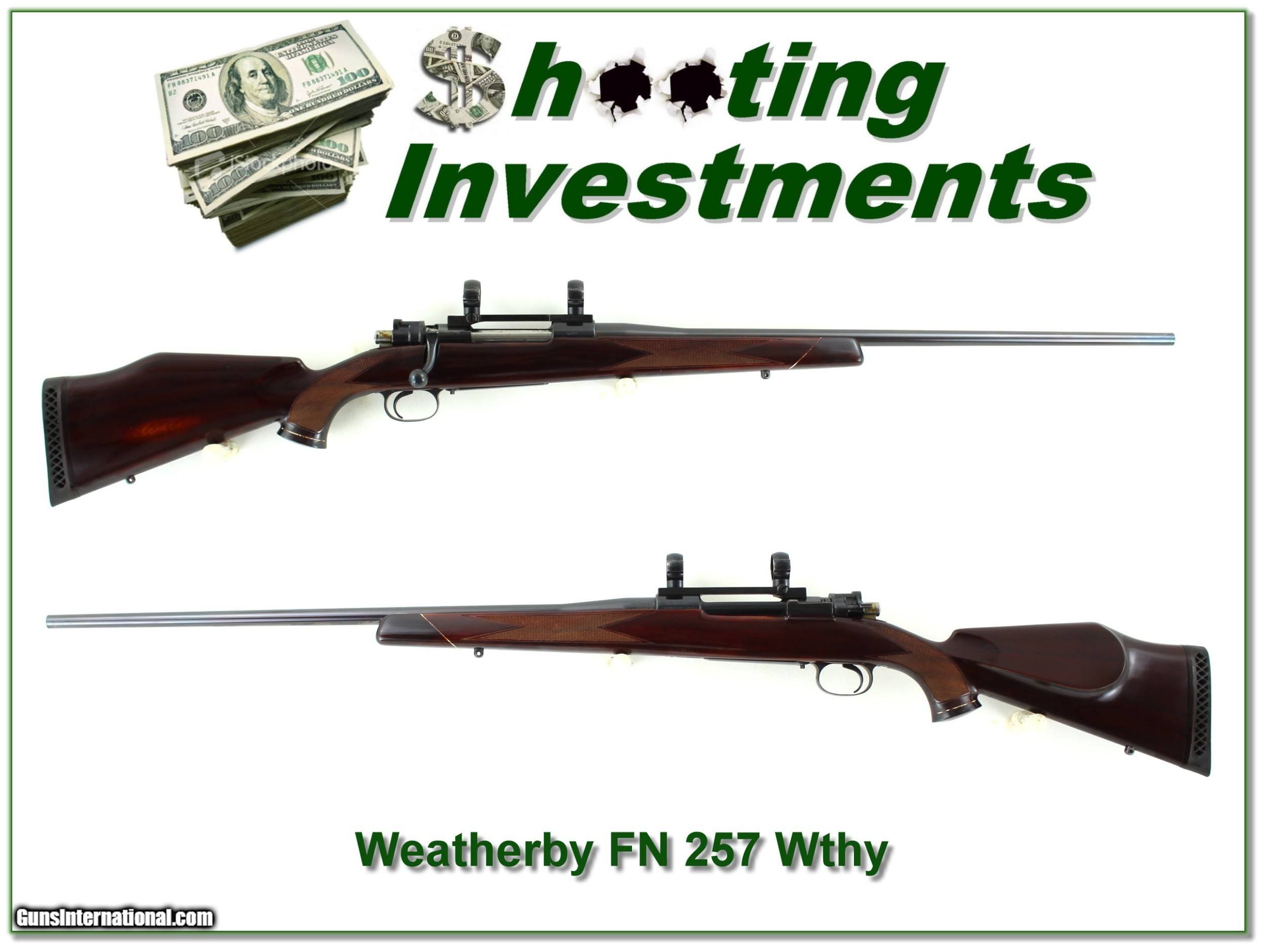 Description: Collectors, this is a top condition and all original Weatherby FN in the harder to find 257 Weatherby Magnum. It was made in 1956. Both blue and wood are excellent. I find only a couple minor marks. It has original Weatherby recoil pad and period Redfield bases and rings. You will look hard to find a nicer one. It is a real Shooting Investment. Shipping and insurance is $49. Please email me with any questions or larger pictures. (Consign your quality firearms with Shooting Investments for only 12%! Let me know if you have any you would like to sell!) 21-1121 Payment: Payment is by Money Order, Cashier’s Check or Personal Check. I can now also accept Credit Cards (MasterCard, Visa, Discover & American Express) with a 3% convenience fee. Shipping: The shipping charge will be listed in each description. It is $39 for most firearms. Some heavy guns or those insured for over $2000 will be higher. Shipments to Alaska and Hawaii are higher because air shipment is required. Most firearms are shipped on Tuesday and Thursday and usually in 5 days of receipt of payment. We package all shipments carefully and insure them. Optics are shipped Priority Mail and most other non-firearm shipments are shipped First Class. Returns: Our return policy is simple. If for any reason you are not pleased with your purchase, you may return your item for a full refund of purchase price. Ammunition cannot be returned. It is important to us that you are happy. Guns cannot be fired or dissembled before returning them and they must be returned in the same condition as received. Notification of a return must occur within 3 days of receipt at your dealer. Shipping, convenience and dealer fees are not refundable and are the responsibility of the buyer. Lay-a-way: If needed, we offer a 60 day lay-a-way option on most firearms. It is 1/3 now, 1/3 in 30 days and 1/3 in 60 days. Lay-a-way firearm sales are final and cannot be returned. If a lay-a-way is not completed the first payment cannot be refunded. Consigning your firearms with Shooting Investments: We will help you get top dollar for your firearms. While most local guns shops charge 20% or more, our fee is only 12% with a minimum of $75. At your local gun shop it might take months to sell. Selling on-line provides instant access to thousands of interested buyers. You won’t find any other on-line dealer willing to sell your firearms for only 12% or listing every gun on 3 separate s. Selling through an House typically costs the seller 15% and the buyer an addition 15% (so 30%) and you have to wait several months to sell and longer to receive funds. If properly priced, we will sell your firearms within a few weeks. Send us an email or give us a call and we’ll explain how easy it is for you to get top dollar. Trading: Trading for us is really just buying your gun to re-sell. If you have a gun you want to trade, please email a picture and we will let you know what we can give for it. You will always get more if we sell it for you on consignment. Help for California Buyers: We are happy to ship to California. It is the buyer’s responsibility to make sure any item you buy is legal in your state. We are also happy to help with your purchase of a firearm from someone other than us. If you see a gun you would like to buy but the seller can’t or won’t ship to California they can ship to use and we’ll then ship it to your California dealer. The cost for this service is only $30 + shipping. Let us know if we can help! SOLD |