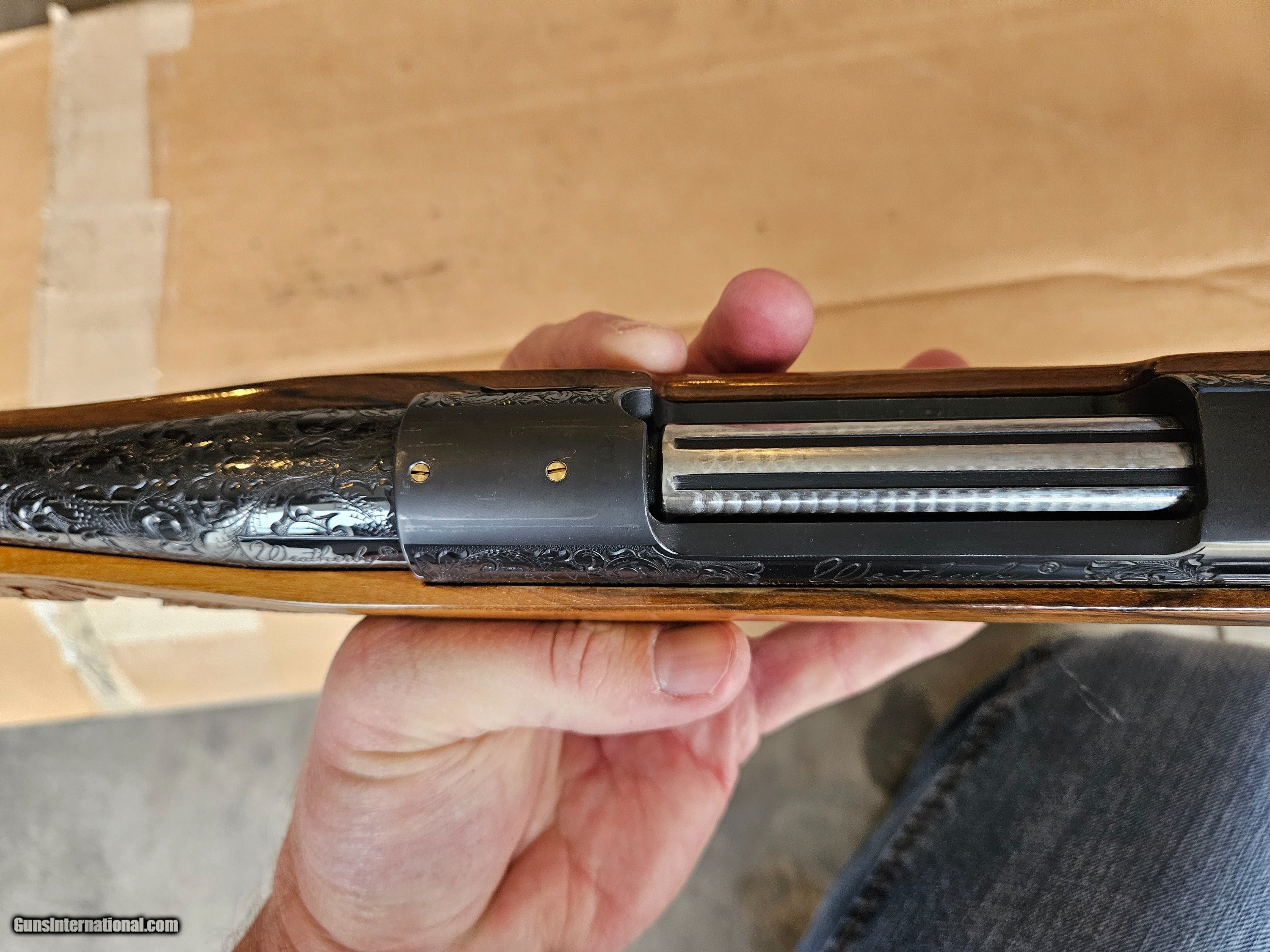 Description: This firearm is an outstanding example of Weatherbys finest, a no-longer produced weatherby full crown in 7mm Weatherby magnum. This example includes full metal engraving and animal embossed floorplate. Barrel length is 24". The estimated overall condition is 99%. shipping is $60.00.price $7099.99 SOLD Rifle Caliber: 7mm Weatherby Magnum |