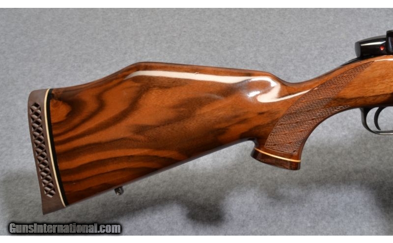 Description: SOLD Caliber Info: 7mm Mag. Metal Condition: Excellent Wood Condition: Excellent Bore Condition: Excellent Barrels: 24 Stock: Walnut with diamond checkering Stock Dimensions: 13 3/8" LOP, 1 1/2" DAC, 2 1/4" DAH Fore End: Walnut with diamond checkering with rosewood fore cap Butt Pad: Weatherby butt pad Weight: 7 lbs. 7 ozs. Item Location: Tulalip, WA |