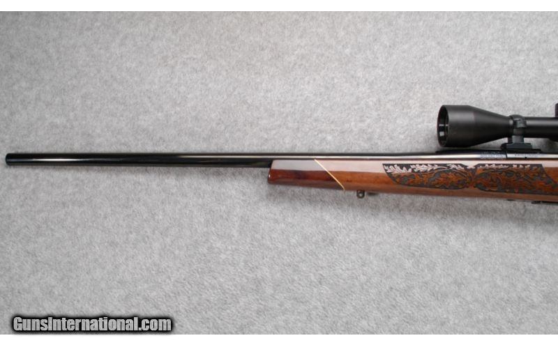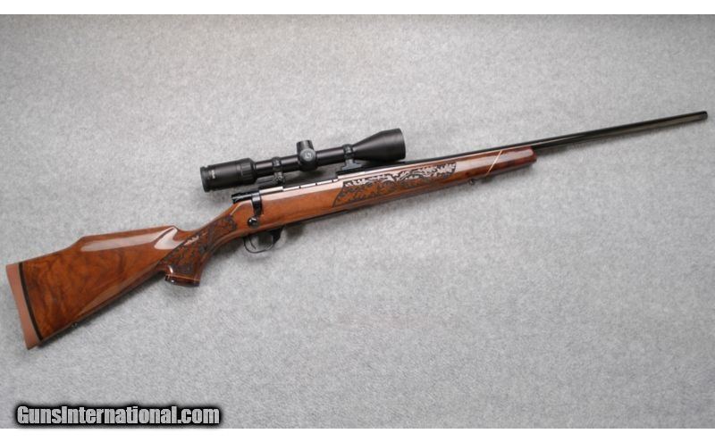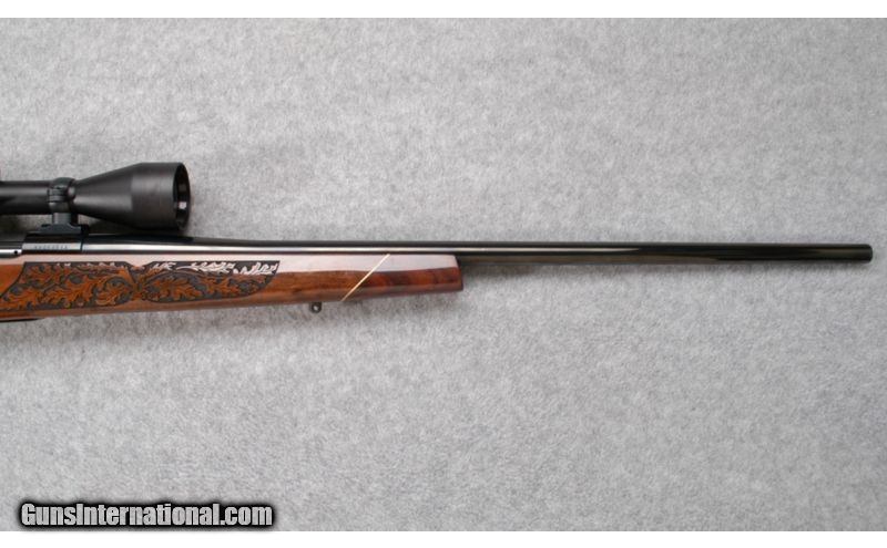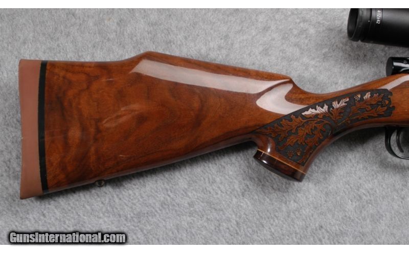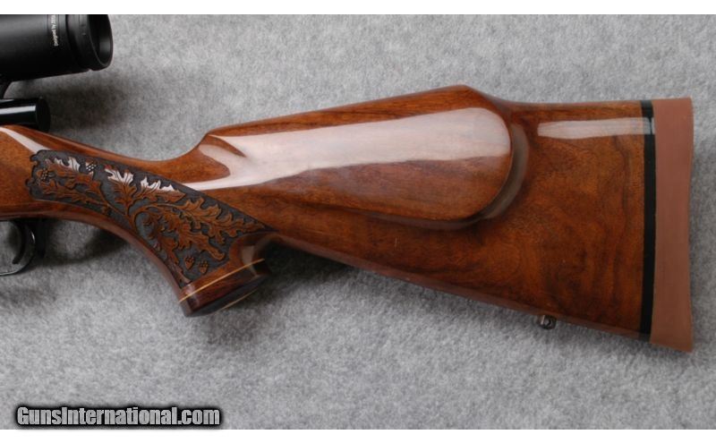 Description: Function, beauty and flawless Weatherby performance ¿ that¿s what you can expect from the LazerGuard. The breathtaking laser-engraved walnut stock looks great and handles extremely well. It has a raised cheekpiece for perfect scope/eye alignment and a recoil-taming rubber pad. This particular rifle is in overall very good condition. SOLD Caliber Info: .300 Weatherby Magnum. Chambers: Bolt action repeater. Metal Condition: Very good. Wood Condition: Very good. Bore Condition: Very good. Barrels: 24", blued. Triggers: Single, blued. Stock: Well figured, lazer engraved, walnut with high gloss finish. Stock Dimensions: 13 3/4" LOP. Butt Pad: Rubber pad. Weight: 9 lb. 4 oz. Sights: Zeiss 4-12x42mm. Item Location: Dundee, MI |