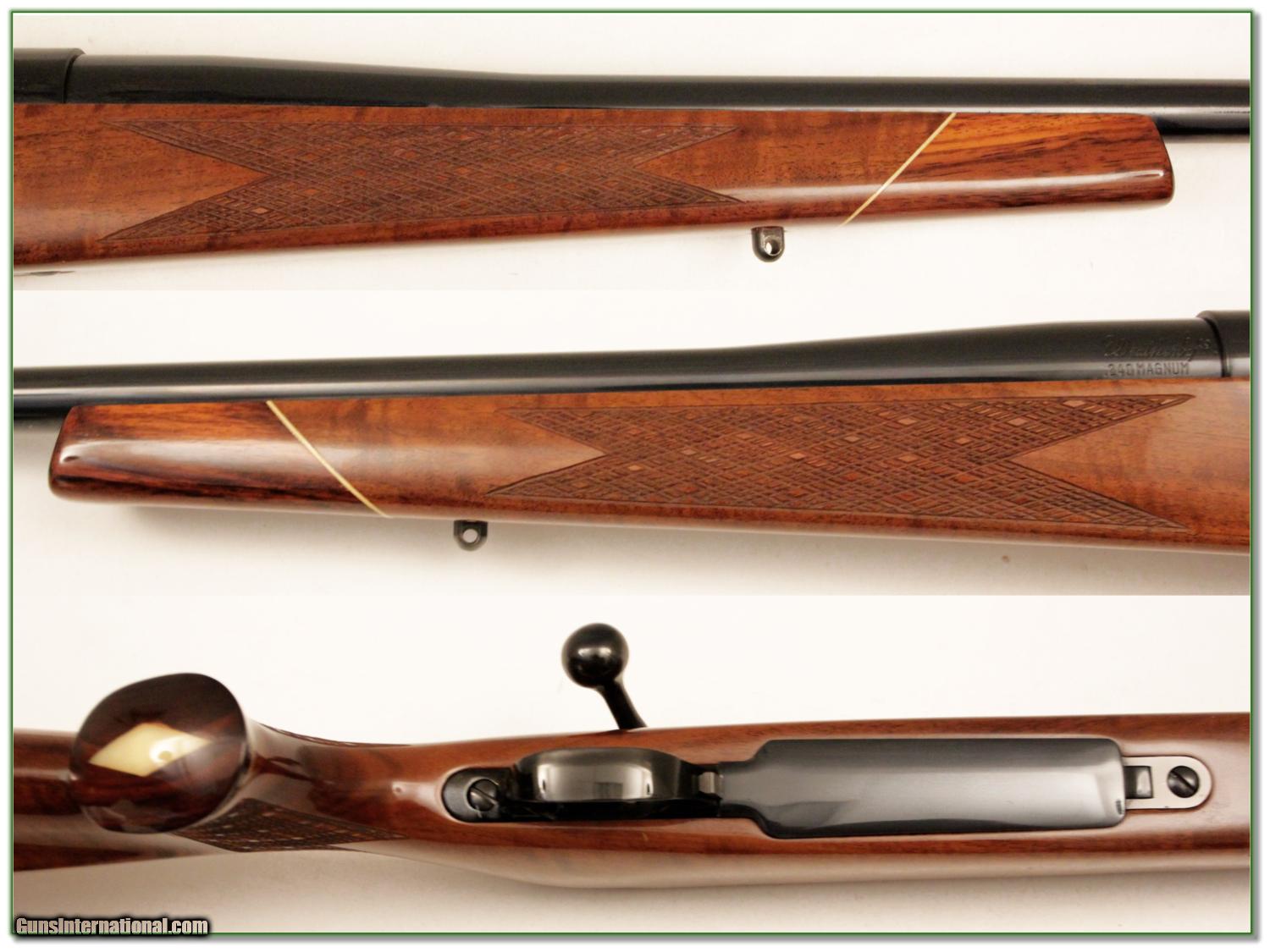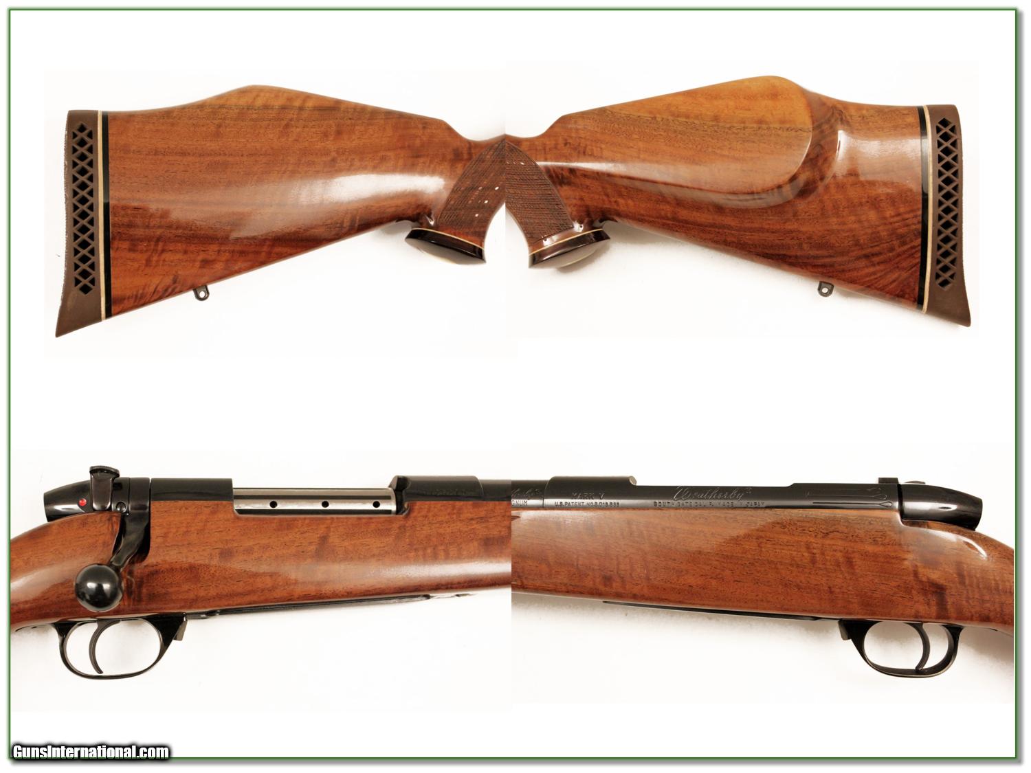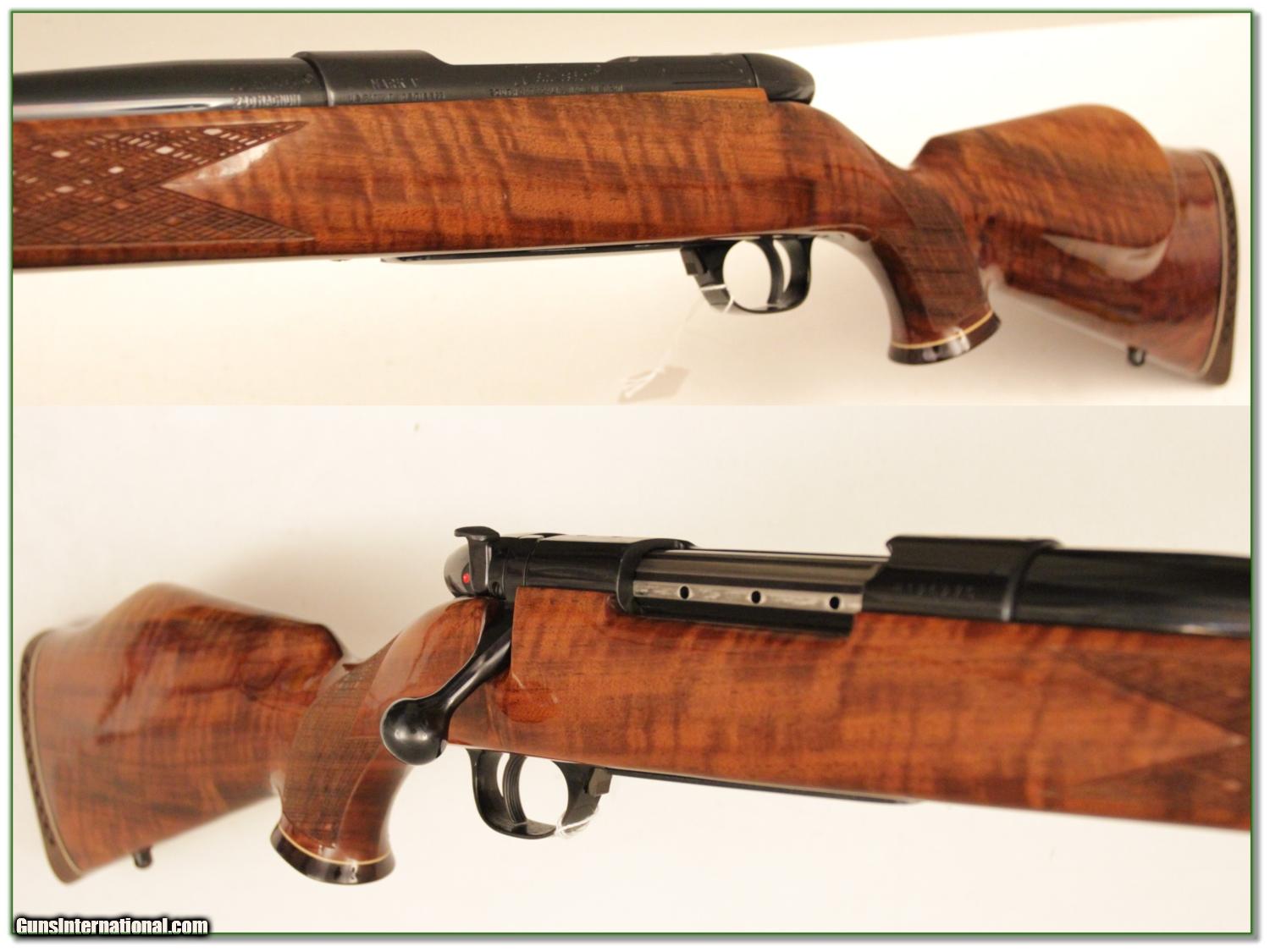 Description: Collectors and hunters, this is a Very Hard to find 26in Mark V Deluxe. This is the original 9 lug bolt. There are no marks. The wood is nicer than my pictures shows. It has light fiddle back throughout. This will make an impressive hunting gun or addition to your collection. It is a real Shooting Investment! Shipping and insurance is 30 or $18 more if you want it shipped in a new Plano hard case. Please email me with any questions or larger pictures. (I now consign quality firearms only 10%! Let me know if you have any you would like to sell!) [15-0806] Payment: Payment is by Money Order, Cashiers Check or Personal Check. I can now also accept MasterCard and Visa with a 3% convenience fee. PayPal can be used for some items but never firearms. Please let us know if you would like to pay via PayPal. Shipping: The shipping charge will be listed in each description. It is $30 for most guns. Some heavy guns or those insured for over $2000 may be higher. Shipments to Alaska and Hawaii are higher because air shipment is required. Most firearms are shipped within 5 days of receipt of payment. We prefer shipping at the beginning of the week to avoid firearms in transit over weekends. We package all shipments carefully and insure them for the full purchase price, rounded up to the next $100. In the unlikely event that damage occurs, it is important that you save all packaging material for the claims process. Optics are shipped Priority Mail and most other non-firearm shipments are shipped First Class. Returns: Our return policy is simple. If for any reason you are not pleased with your purchase, you may return your item for a refund. The only exception is ammunition, it cannot be returned. It is important to us that you are happy. Guns cannot be fired or dissembled before returning them and must be returned in the same condition as received. Notification of a return must occur with-in 3 days of receipt at your dealer. Shipping, convenience and dealer fees are not refundable and are the responsibility of the buyer. Lay-a-way: If needed, we offer a 60 day lay-a-way option on most firearms. It is 1/3 now, 1/3 in 30 days and 1/3 in 60 days. Lay-a-way firearm sales are final. Consigning your firearms with Shooting Investments: We will help you get top dollar for your firearms. While most local guns shops charge 20% or more, our fee is only 10% with a minimum of $50. At your local gun shop it might take months to sell. Selling on-line provides instant access to thousands of interested buyers. You won’t find any other on-line dealer willing to sell your firearms for only 10% or listing every gun on 4 separate s. Selling through an House typically costs the seller 15% and the buyer an addition 15% (so 30%) and you have to wait several months to sell and longer to receive funds. If properly priced, we will sell your firearms in a week or two. Send us an email or give us a call and we’ll explain how easy it is for you to get top dollar. Trading: We collect guns and usually just trade for guns we want to add to our collections. We often sell guns for others wanting to purchase one of ours. We find this the most fair to both of us. Our Commission is only 10% and we hold the gun you want until yours sells. Please contact us if you want to sell one of yours to buy one of ours. Help for California Buyers: We are happy to ship to California. It is the buyer’s responsibility to make sure any item you buy is legal in your state. We are also happy to help with your purchase of a firearm from someone other than us. If you see a gun you would like to buy but the seller can’t or won’t ship to California we can help. You buy the gun and have it shipped to us. We’ll then ship it to your California dealer. The cost for this service is only $30 + shipping. Let me know if we can help! SOLD |