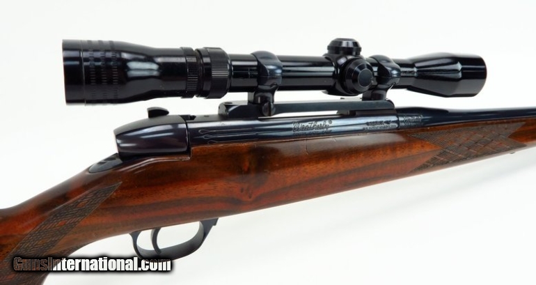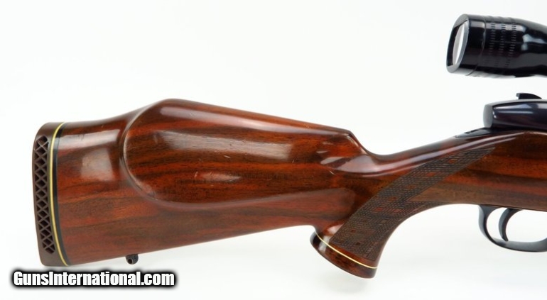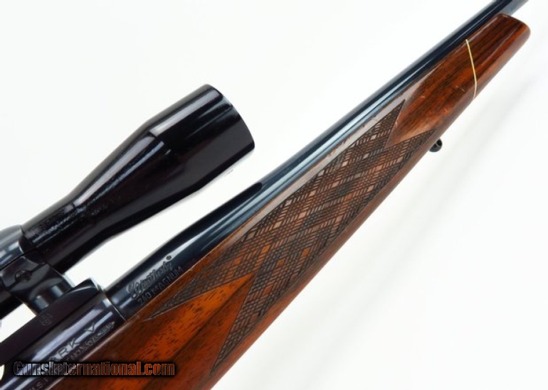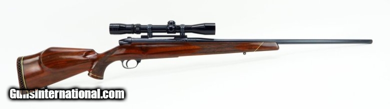 Description: Weatherby Mark V .240 Magnum caliber rifle. Left hand German made deluxe model with Redfield 3x9 scope. Shows light hunting wear, overall very good condition. SOLD |