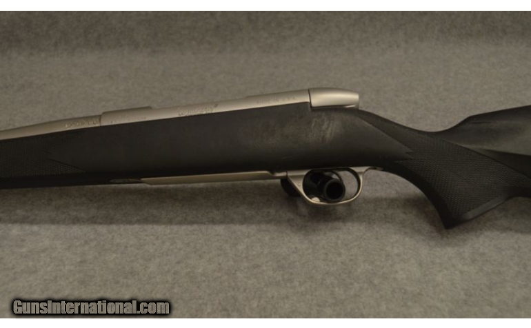 Description: SOLD Caliber Info: .257 WBY MAG. Chambers: Bolt action right with 3 gas ports. Metal Condition: Some lite handling marks other wise in good condition. Wood Condition: Synthetic some lite handling marks other wise in good condition. Bore Condition: Bright and shiny. Barrels: 26 Inch classic stainless. Triggers: Single. Stock: Synthetic English pistol grip with checkered. Stock Dimensions: 13 1/8 LOP 1 3/8 DAC 2 DAH. Fore End: Matching synthetic with checkered. Butt Pad: Black rubber pad. Weight: 8 lbs 8 oz. Item Location: Berlin, MA |