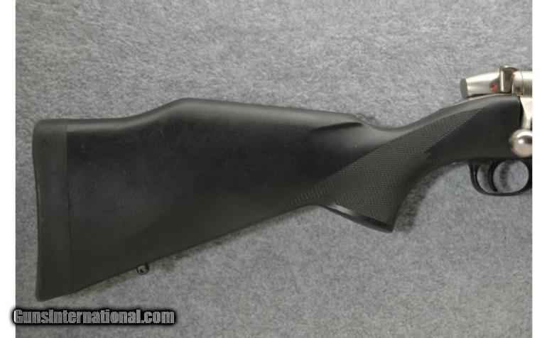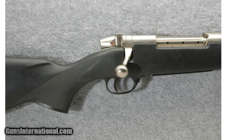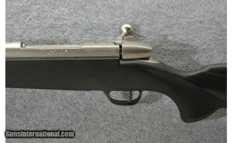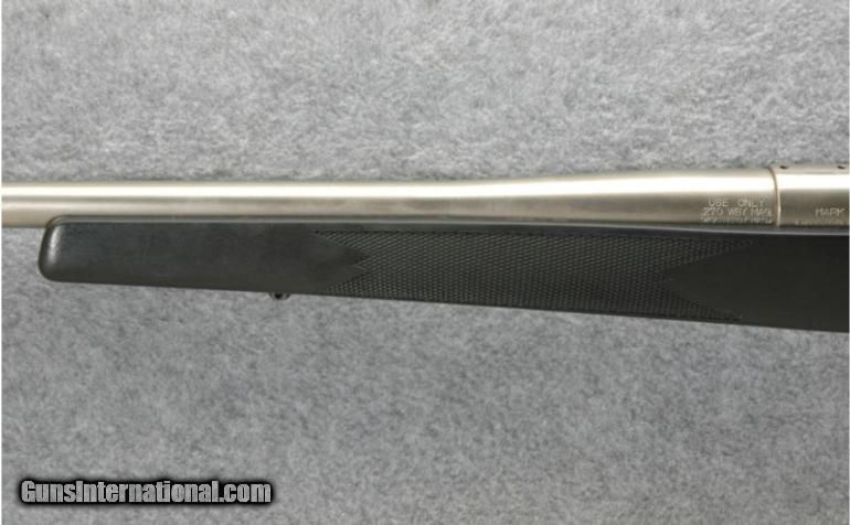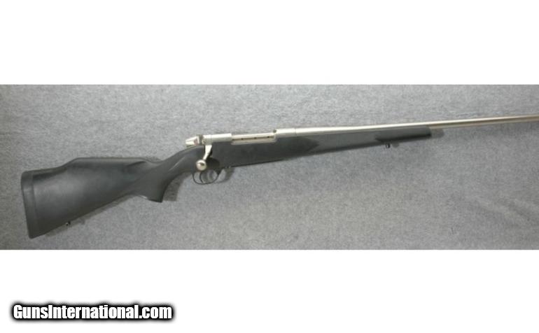 Description: SOLD Caliber Info: .270 Wby. Mag. Metal Condition: Very good condition. A couple of very small light stain marks on the receiver. Marks where a scope was removed. Bore Condition: Very bright and shiny. Barrels: 26 inch satin stainless steel barrel with muzzel break. Triggers: Grooved. Stock: Synthetic black checkered pistol grip. Monte Carlo. Stainless steel receiver. Fore End: Synthetic black checkered. Butt Pad: Weatherby rubber pad. Weight: 8 lbs. 4 oz. Sights: Scope mount only. Drilled and tapped. Item Location: Louisville, KY |
