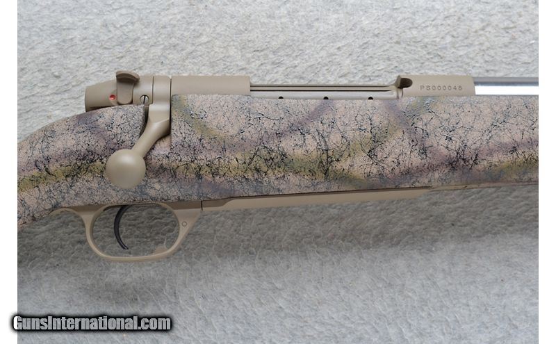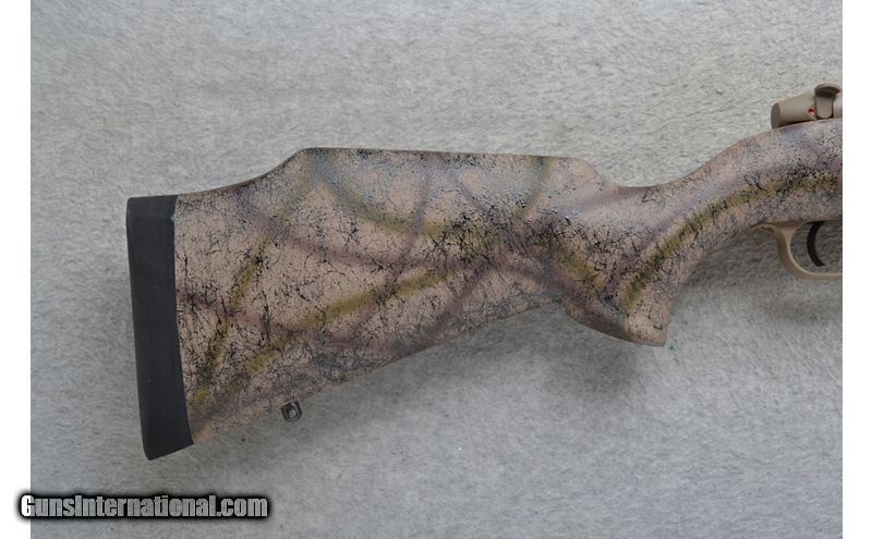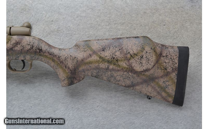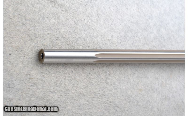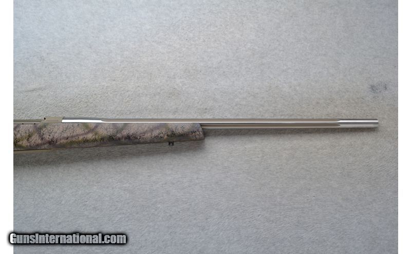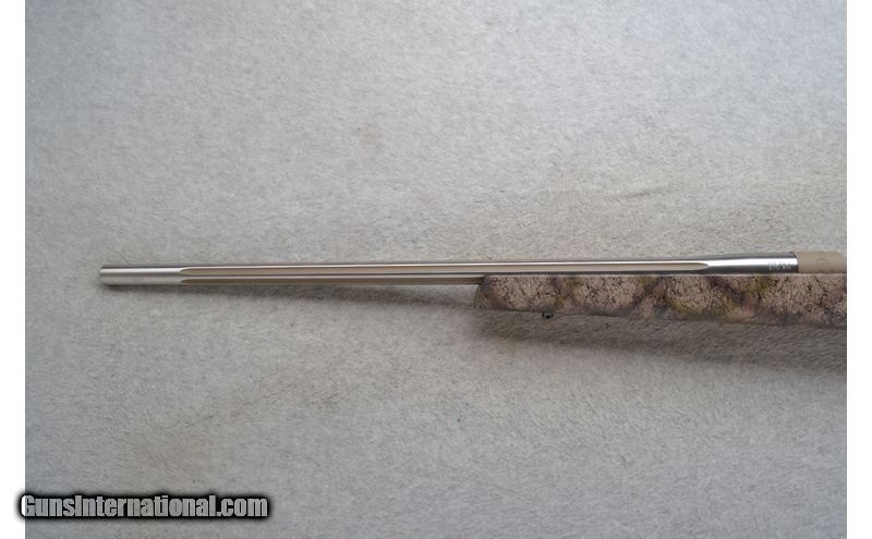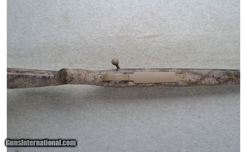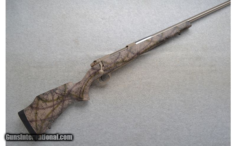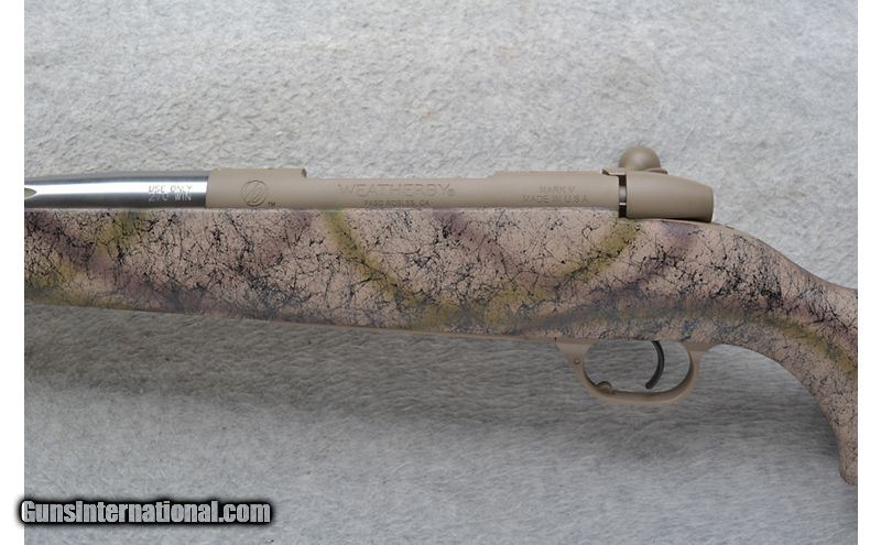 Description: This Weatherby Model Mark V is a right hand bolt action rifle in .270 Win. Cal. It has a 24 inch fluted stainless steel barrel. It is drilled and tapped for a scope mount. No iron sights. The butt stock is a tan polymer with black webbing and camo lines with a raised cheekpiece. The forearm is a tan polymer with black webbing and camo lines. Made in U.S.A. .270 Winchester SOLD Chambers: Internal magazine with a hinged floorplate. Metal Condition: Excellent. Bore Condition: Excellent. Barrels: 24 inch fluted stainless steel. Stock Dimensions: LOP 13.1/2 inches. Fore End: Tan polymer with black webbing and camo lines. Butt Pad: Decelerator black rubber recoil pad. Weight: 7 lb. 2 oz. Sights: Drilled and tapped for a scope mount. No iron sights. Item Location: Richfield, WI |