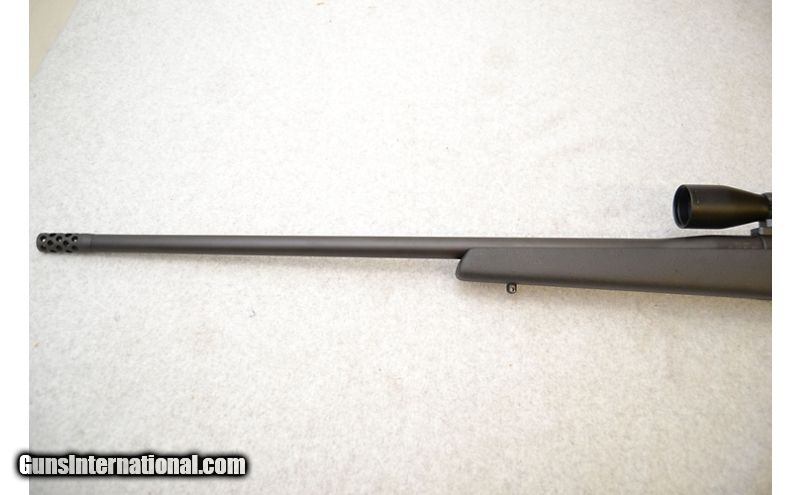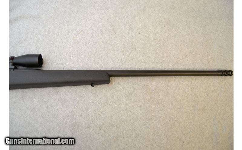 Description: Great shape overall. Minor handling marks on the surface of the finish but no apparent penetration. The brake has some finish loss round the muzzle and some light surface rust. The pictures make the damage around the rear sling stud and on the butt pad appear much worse than they actually are, but there is still some minor surface damage in those areas. .30-378 Weatherby Magnum SOLD Chambers: Bolt action fed from an internal magazine with a hinged floor plate. Metal Condition: Very good to excellent. Wood Condition: Stock is in excellent condition. Bore Condition: Excellent with bright shine and strong rifling. Barrels: 26" Matte blued with muzzle brake. Triggers: Narrow blued metal with grooved surface. Stock Dimensions: Pillar bedded black composite in Monte Carlo style with a 13½" LOP. Fore End: Matte black composite. Butt Pad: Black Pachmayr Decelerator pad. Weight: 9lbs 8oz Sights: No iron sights. Comes equipped with a Swarovski 3-9x36mm Z3 scope. Chokes: N/A Item Location: Green Bay |