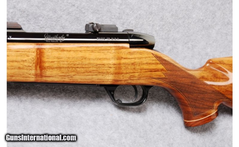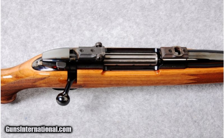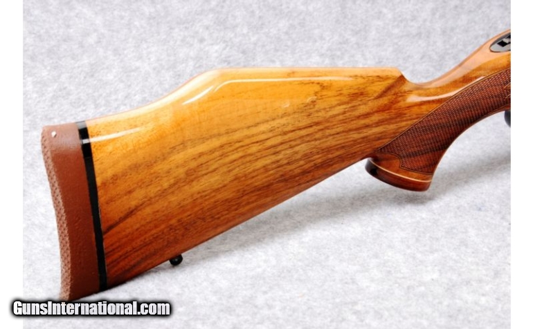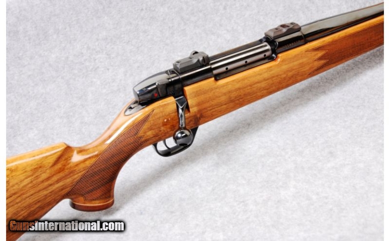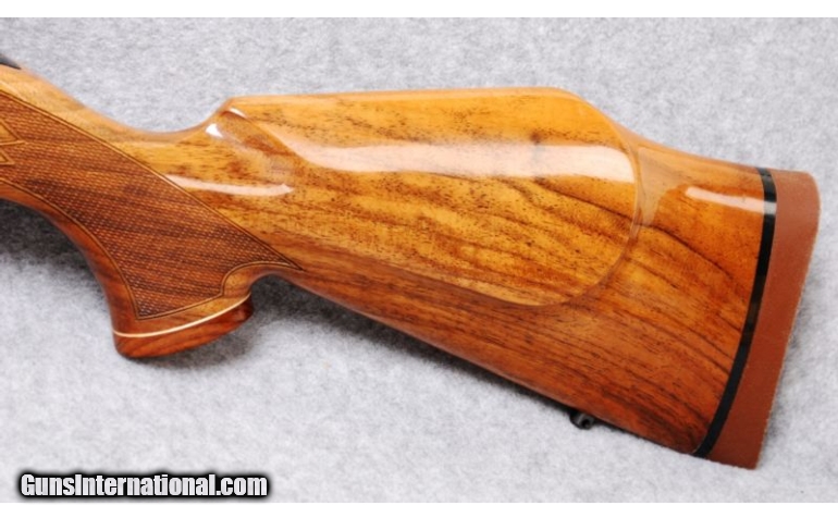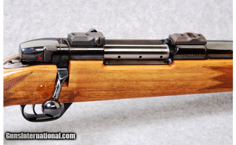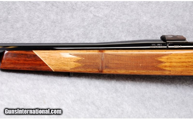 Description: SOLD Caliber Info: .300 Weatherby Magnum. Metal Condition: Lustre blue-black receiver with a 2-position right-hand safety, cocking indicator, grooved bolt, smooth bolt handle, and trigger guard floor plate release. Wood Condition: Minor mars. Bore Condition: Excellent. Barrels: 27" lustre blue-black barrel with no sights. Triggers: Serrated trigger with adjustments. Stock: High-gloss finish walnut with a checkered pistol grip and mahogany grip cap, cheek piece, and sling stud. Stock Dimensions: LOP: 14 5/8". Fore End: Checkered fore end with a mahogany fore end tip and sling stud. Butt Pad: 1" rubber recoil pad. Weight: 8 lbs, 7 oz. Sights: 2 piece scope mounts. Item Location: Kansas City, KS |