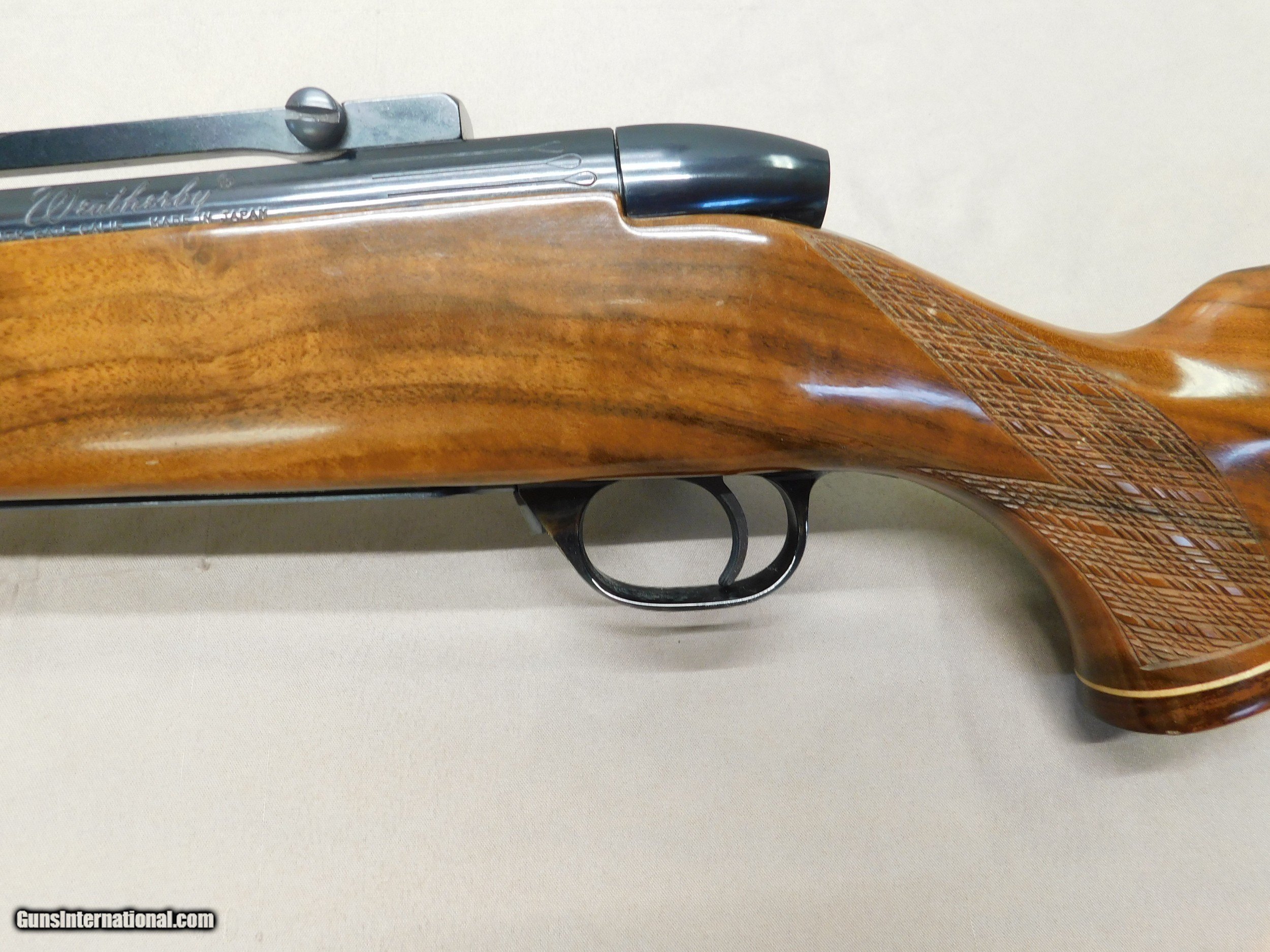 Description: This is a used Weatherby Mark V 378 WBY bolt action rifle It is a 3+1 shot with a 26" blued barrel Has Redfield base SN-H145046 SOLD Manufacturer: Weatherby Model: MarkV Serial Number: H145046 Barrel Length: 26 Condition: Used-Very Good Metal Condition: Very Good Wood Condition: Very good Bore Condition: Very good Barrels: Blue Barrel Type: Round Action: Bolt Stock: Checkered Walnut with sling studs and cheek plate Butt Pad: Rubber Extras: Redfield base |