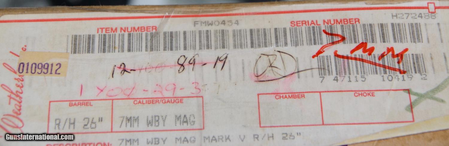 Description: Weatherby Mark V 7mm WBY Mag, 26" barrel, Japan, unfired in box. SOLD |