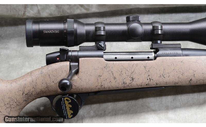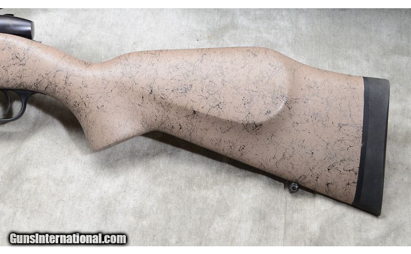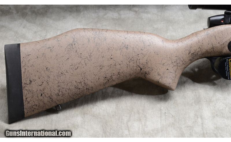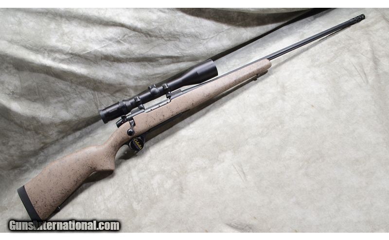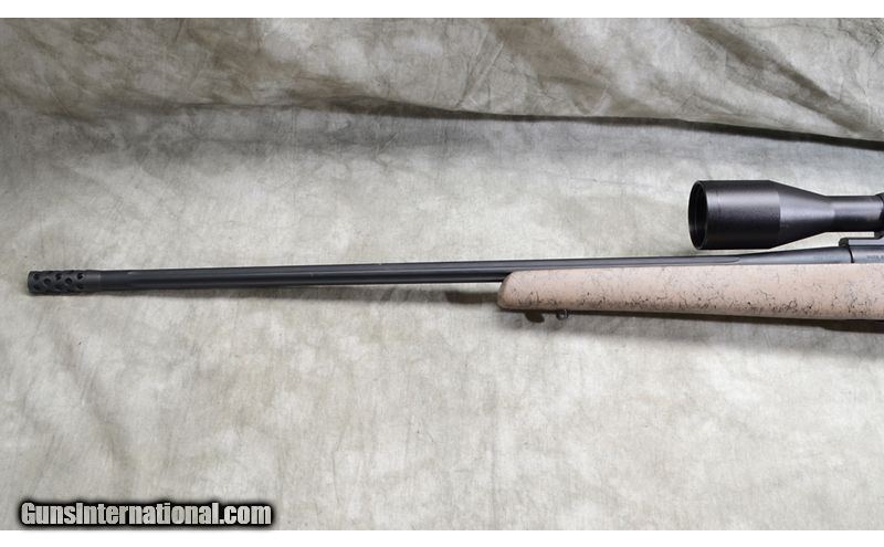 Description: This rifle features tan synthetic Monte Carlo stock with black webbing, fluted blue barrel with muzzle brake, and soft recoil pad. 7mm Weatherby Magnum SOLD Chambers: 4 Metal Condition: Excellent. Wood Condition: Excellent. Bore Condition: Shiny and good rifling. A little bit dark. Barrels: 26 inch inclusive of muzzle brake Triggers: Factory Stock Dimensions: 13-1/2 inch LOP. Butt Pad: Soft rubber pad. Weight: 8 lb - 7 oz Sights: Swarovski 3-12x50mm scope. Item Location: Rogers |