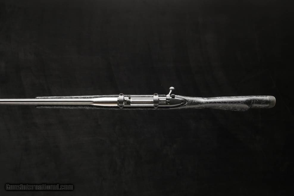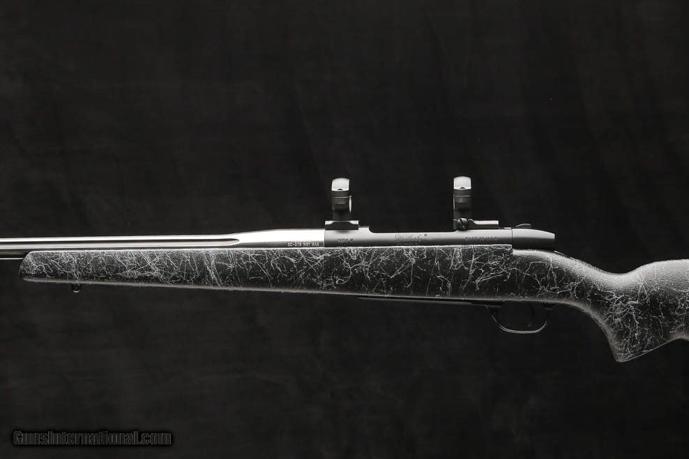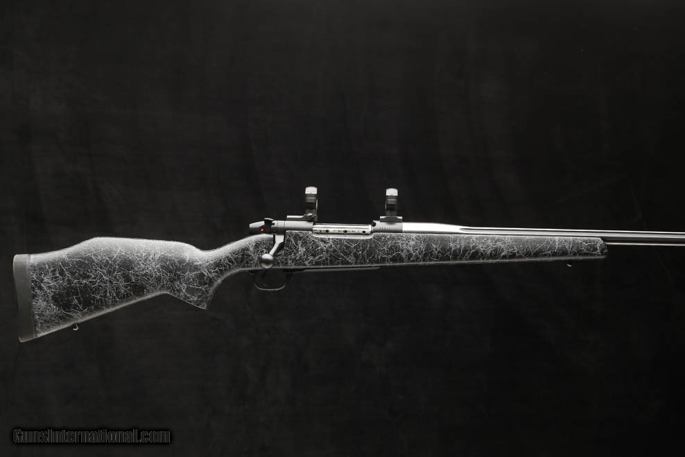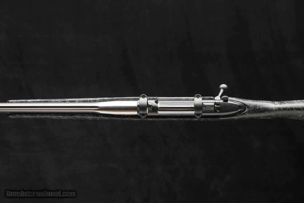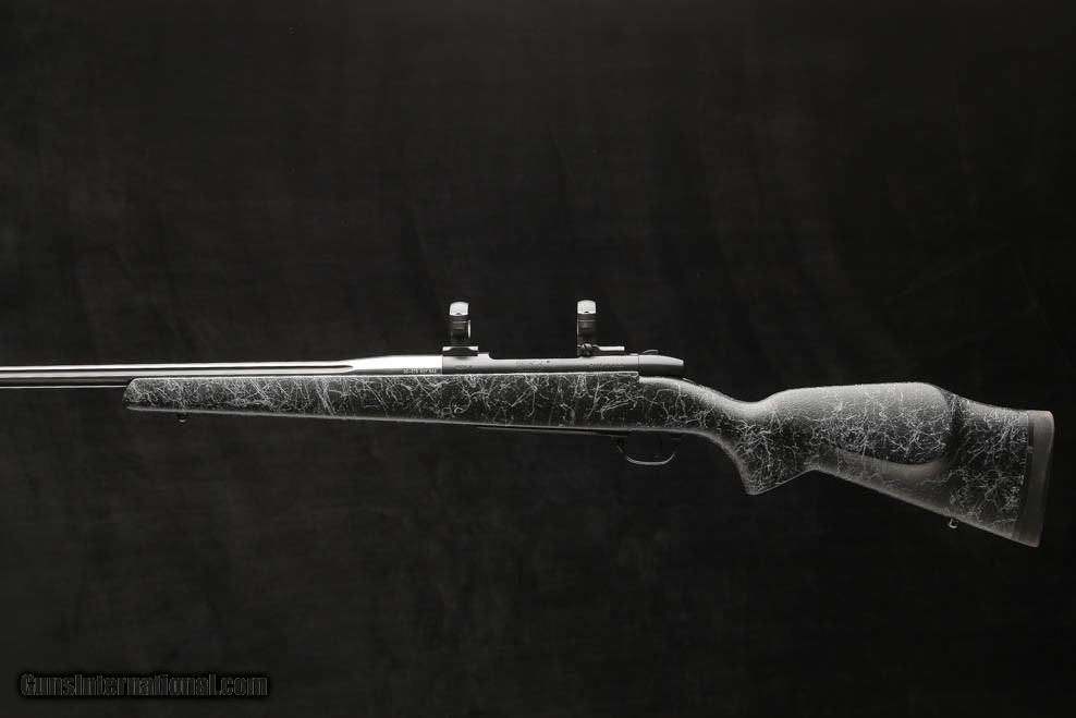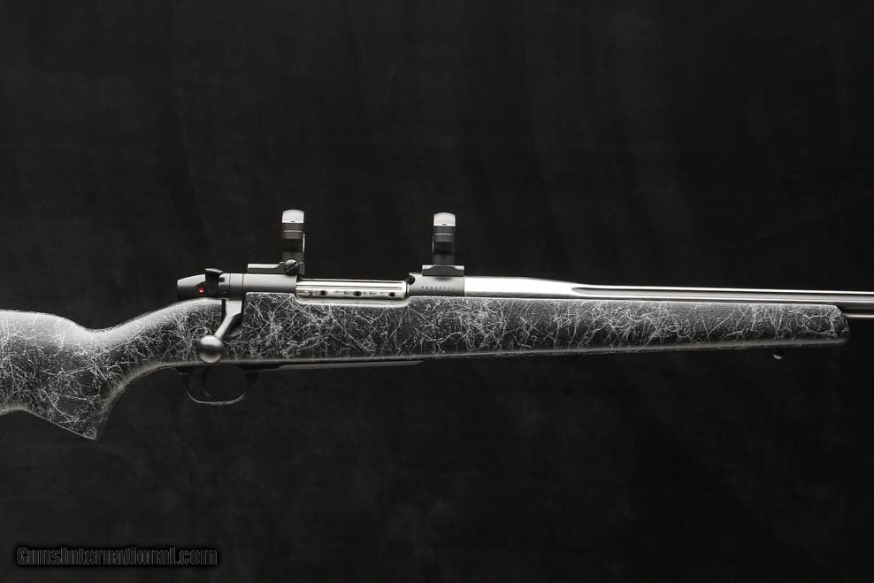 Description: Weatherby Mark V Accumark 30-378 features a 2-tone spun stainless with graphite black cerakote number 3 contour fluted barrel fitted with an , graphite black cerakote receiver, bolt, bolt knob and safety, and a hand-laid, raised Monte-Carlo fiberglass stock with matte gel coat and spiderweb accents, front and rear ball sling swivel studs, a hinged floor-plate with inside the guard release, and a 1” black rubber Decelerator butt pad, fitted with 30mm rings and bases. Price: $1,595.00 Contact Seller |