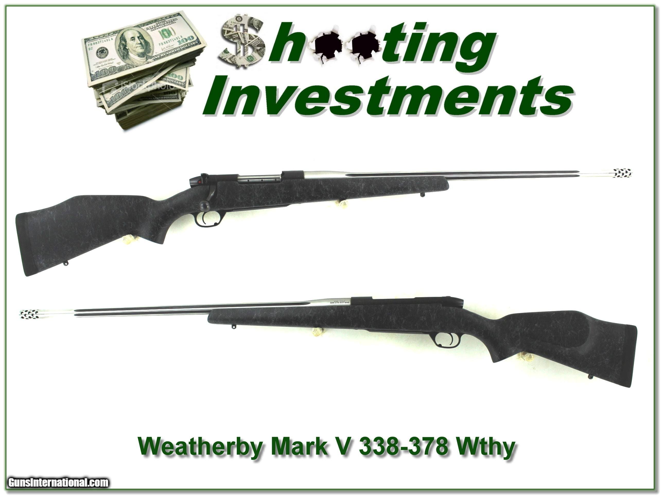 Description: Long range big game hunters, this is an excellent near new Weatherby Mark V Accumark in the flat shooting 338-378 Weatherby Magnum. From the razor sharp lugs, I am sure only a few rounds fired. These have 26in fluted barrels and are the ultimate long range elk, moose or African Plains caliber. It is a real shooting investment! Shipping and insurance is $49. Please email me with any questions or larger pictures. (Consign your quality firearms with Shooting Investments for only 12%! Let me know if you have any you would like to sell!) 24-0559 Payment: Payment is by Money Order, Cashier’s Check or Personal Check. I can now also accept Credit Cards (MasterCard, Visa, Discover & American Express) with a 3% convenience fee. Shipping: The shipping charge will be listed in each description. It is $49 for most firearms. Some heavy guns or those insured for over $2000 will be higher. Shipments to Alaska and Hawaii are higher because air shipment is required. Most firearms are shipped on Tuesday and Thursday and usually in 5 days of receipt of payment. We package all shipments carefully and insure them. Optics are shipped Priority Mail and most other non-firearm shipments are shipped First Class. Returns: Our return policy is simple. If for any reason you are not pleased with your purchase, you may return your item for a full refund of purchase price. Ammunition cannot be returned. It is important to us that you are happy. Guns cannot be fired or dissembled before returning them and they must be returned in the same condition as received. Notification of a return must occur within 3 days of receipt at your dealer. Shipping, convenience and dealer fees are not refundable and are the responsibility of the buyer. Lay-a-way: If needed, we offer a 60 day lay-a-way option on most firearms. It is 1/3 now, 1/3 in 30 days and 1/3 in 60 days. Lay-a-way firearm sales are final and cannot be returned. If a lay-a-way is not completed the first payment cannot be refunded. Consigning your firearms with Shooting Investments: We will help you get top dollar for your firearms. While most local guns shops charge 20% or more, our fee is only 12% with a minimum of $75. At your local gun shop it might take months to sell. Selling on-line provides instant access to thousands of interested buyers. You won’t find any other on-line dealer willing to sell your firearms for only 12% or listing every gun on 3 separate s. Selling through an House typically costs the seller 15% and the buyer an addition 15% (so 30%) and you have to wait several months to sell and longer to receive funds. If properly priced, we will sell your firearms within a few weeks. Send us an email or give us a call and we’ll explain how easy it is for you to get top dollar. Trading: Trading for us is really just buying your gun to re-sell. If you have a gun you want to trade, please email a picture and we will let you know what we can give for it. You will always get more if we sell it for you on consignment. SOLD |