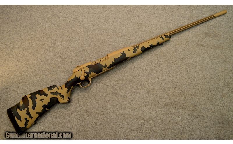 Description: This is a discontinued, factory direct Weatherby Mark V Arroyo in .300 Weatherby Magnum with KUIU Vias camo finish .300 Weatherby Magnum SOLD Metal Condition: Very good with a few small scratches Wood Condition: Very good with a few small scratches Bore Condition: Clean with bright lands Barrels: 26" fluted #3 contour Triggers: Weatherby LXX Stock Dimensions: 13 1/2" LOP Fore End: Composite w/ KUIU Vias camo finish Butt Pad: Pachmayr decelerator Weight: 8 Lbs. 2 Oz. Sights: Drilled and tapped for scope mounts Item Location: Glendale, AZ |