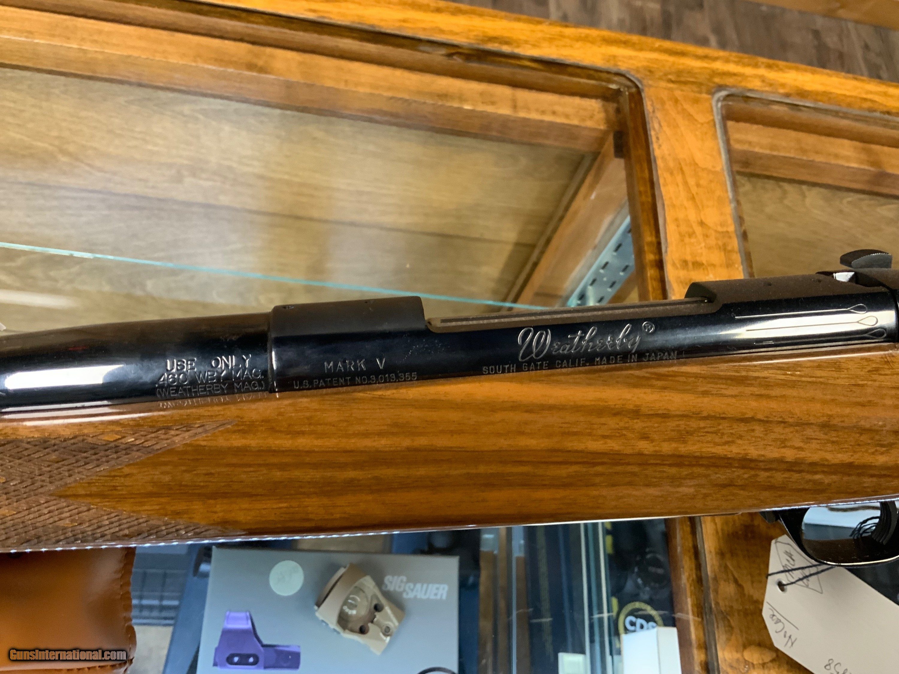 Description: Weatherby Mark V Custom chambered in .460 Weatherby Magnum South Gate, California Made in Japan rifle Floor Plate engraved " Weatherby Custom " Beautiful wood stock and bluing 27-1/2" barrel with Muzzle Brake installed 48-3/8" Overall Length Small Wood issue in front of bolt and next to trigger guard Comes with 1 box of ammo Please see all photos. Shipping to lower 48 only $2,900 Rifle Caliber: .460 Weatherby Magnum Manufacturer: Weatherby Model: Mark V Serial Number: H222858 Price: $2,900.00 Contact Seller |